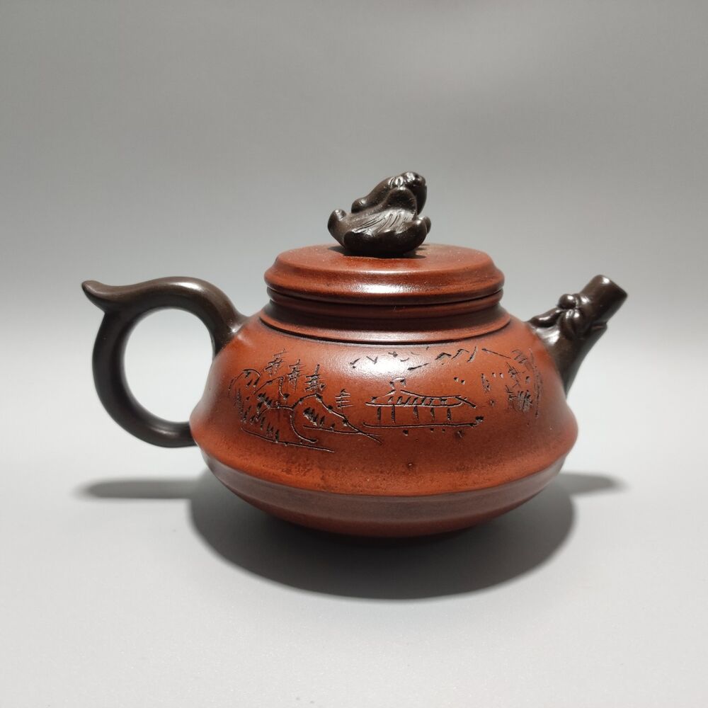 Vintage Chinese Yixing Purple Clay Teapot Zisha Ceremony Carving Collectible Art