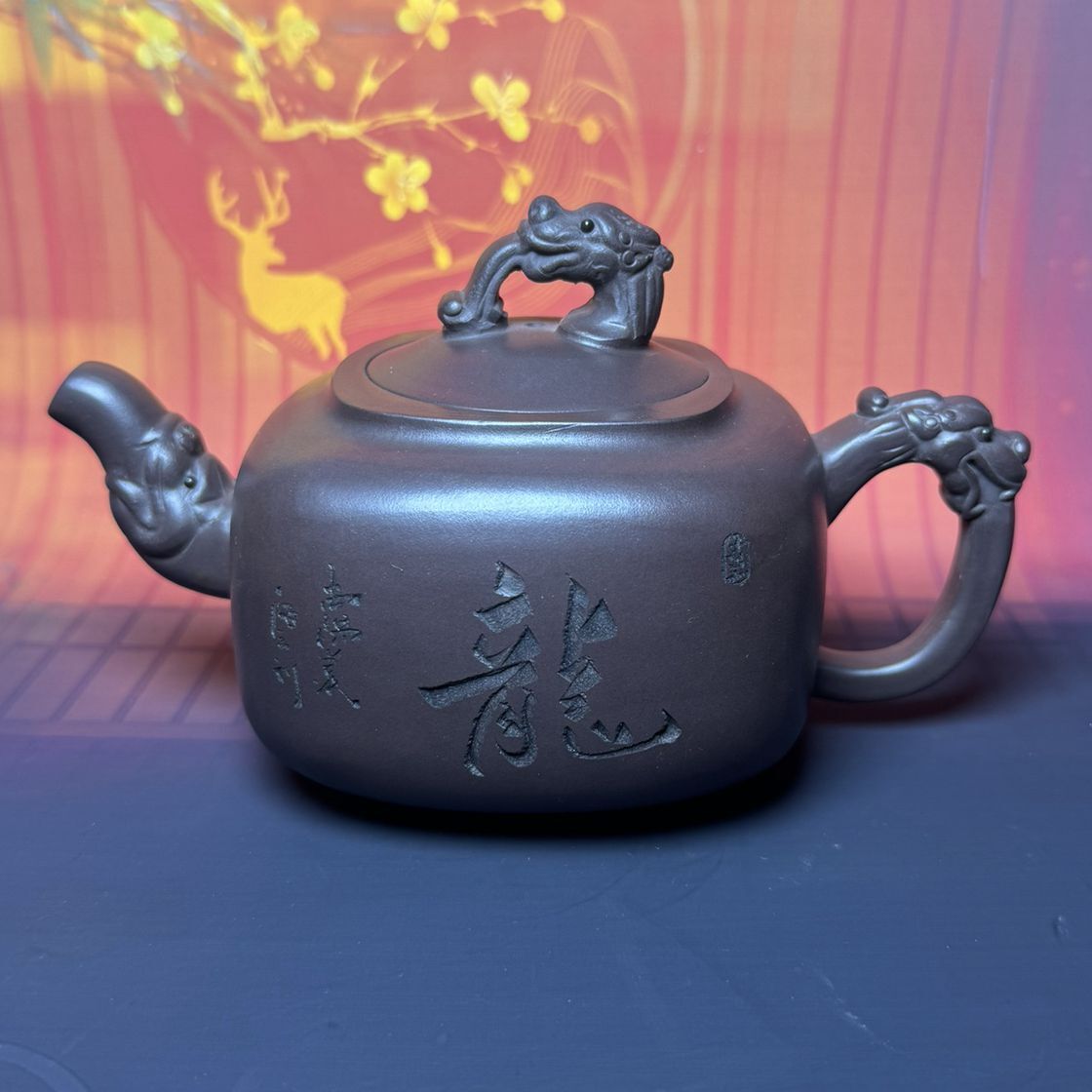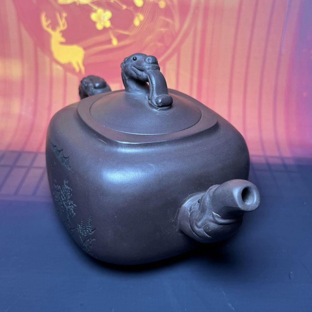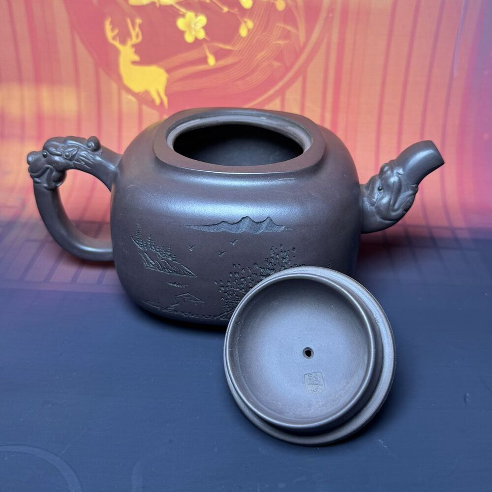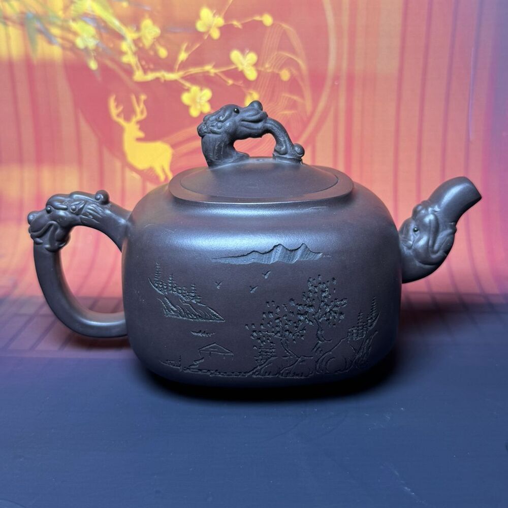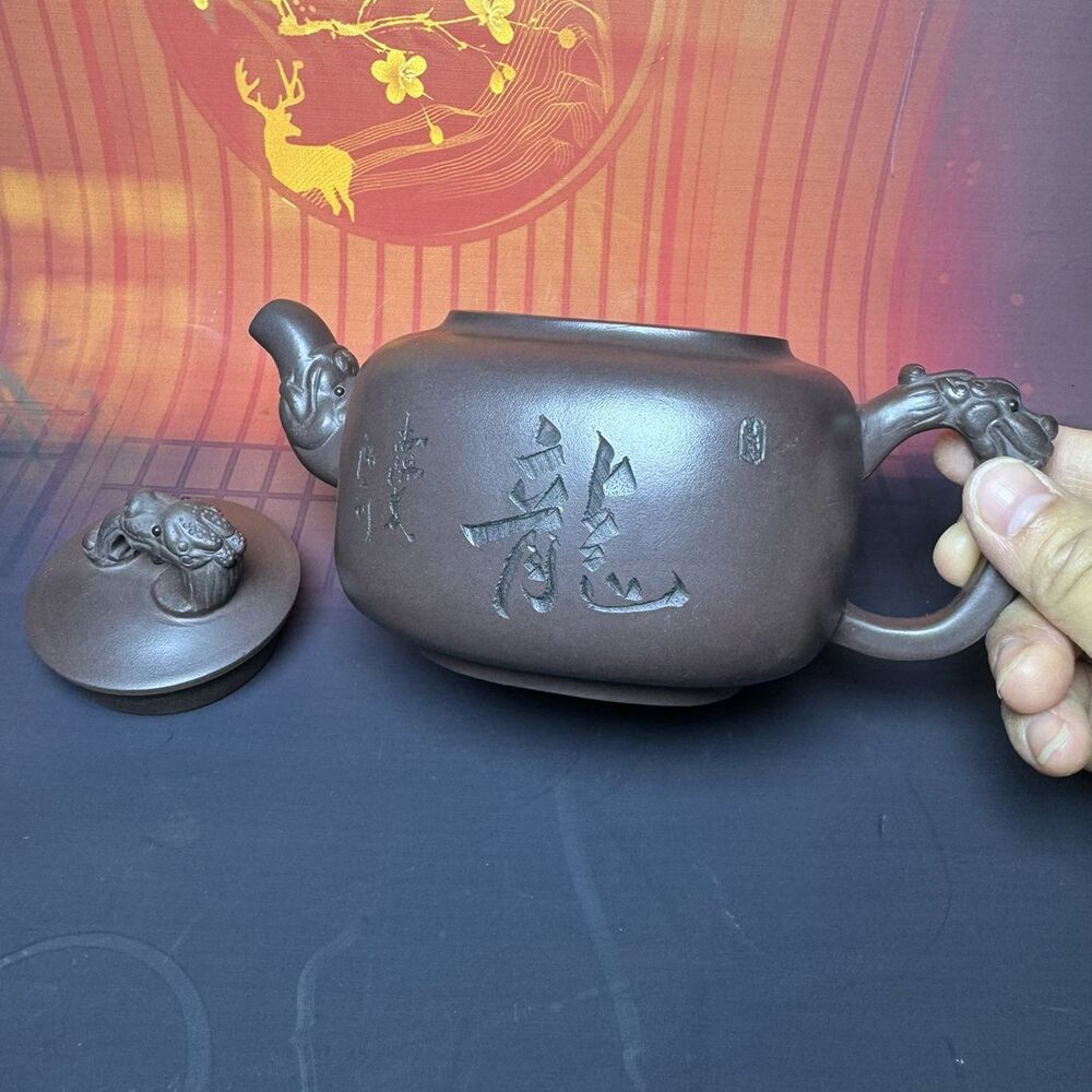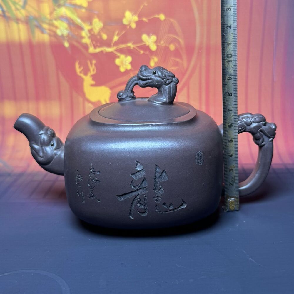 Vintage Chinese Yixing Purple Clay Teapot Zisha Ceremony Carving Dragon Tea Set