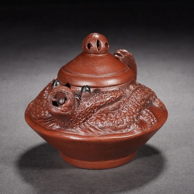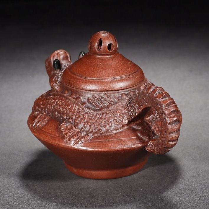 Vintage Chinese Yixing Purple Clay Teapot Zisha Ceremony Carving Dragon Teaware