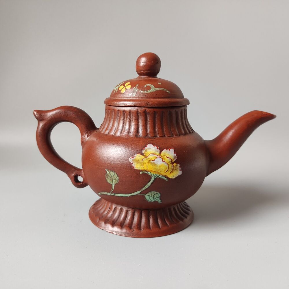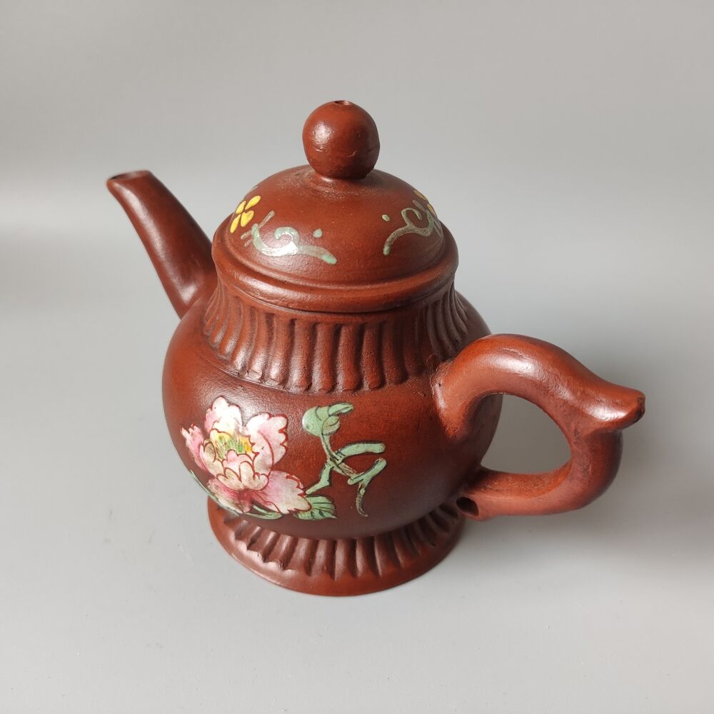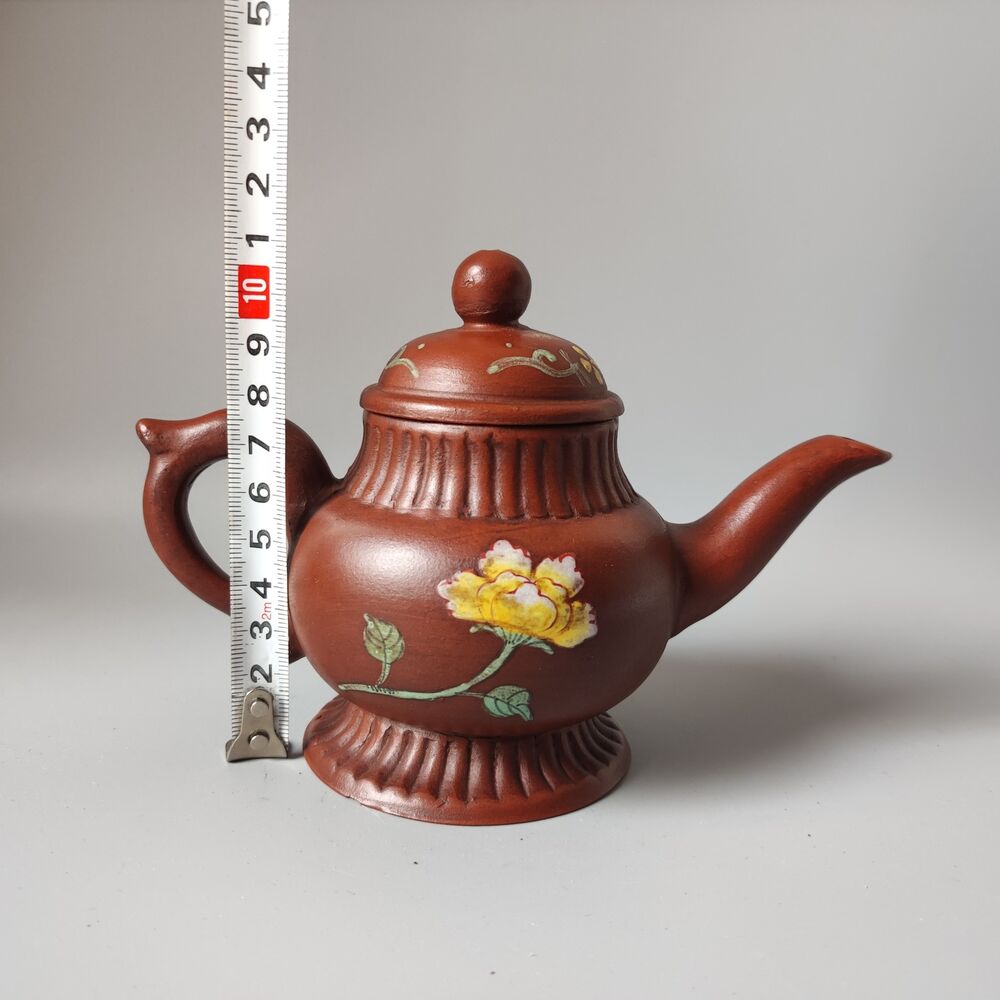 Vintage Chinese Yixing Purple Clay Teapot Zisha Ceremony Painted Fine Teaware
