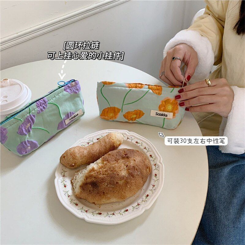 Vintage Flower Print Cosmetic Bag Makeup Case Zipper Pouch Lipsticks Brush Pouch