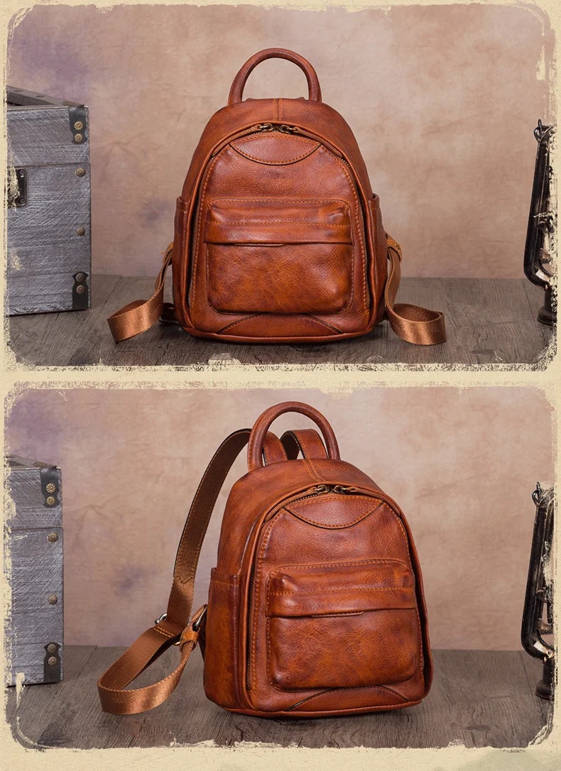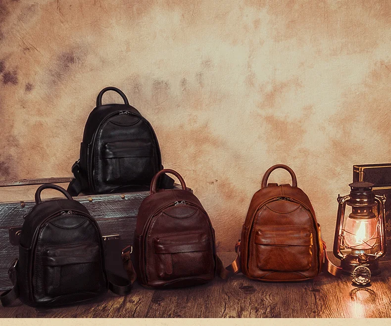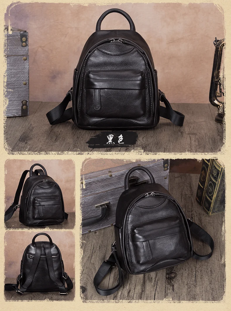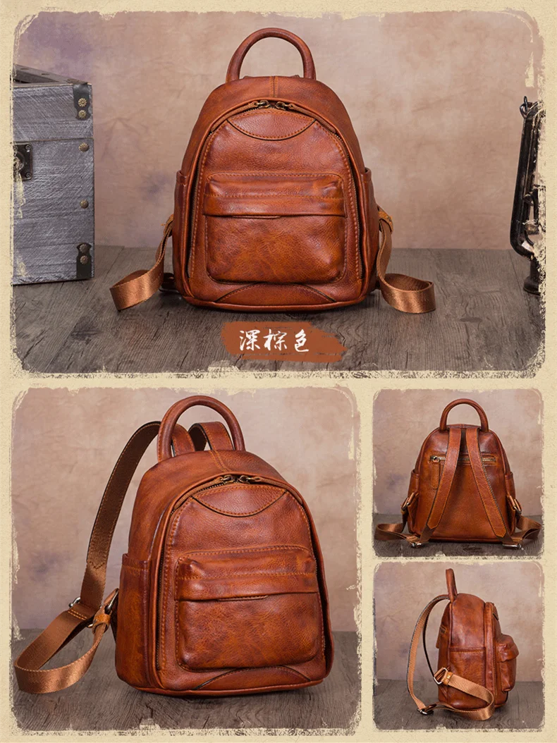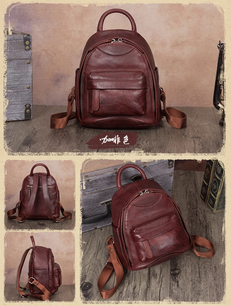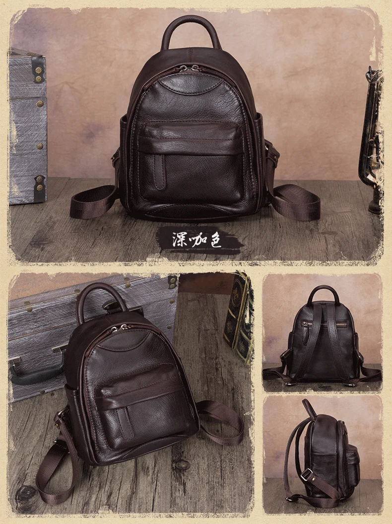 Vintage Genuine Leather Women Backpack Small Backpacks Schoolbag Shoulder Bags Soft First Layer Cowhide Female Cow Leather