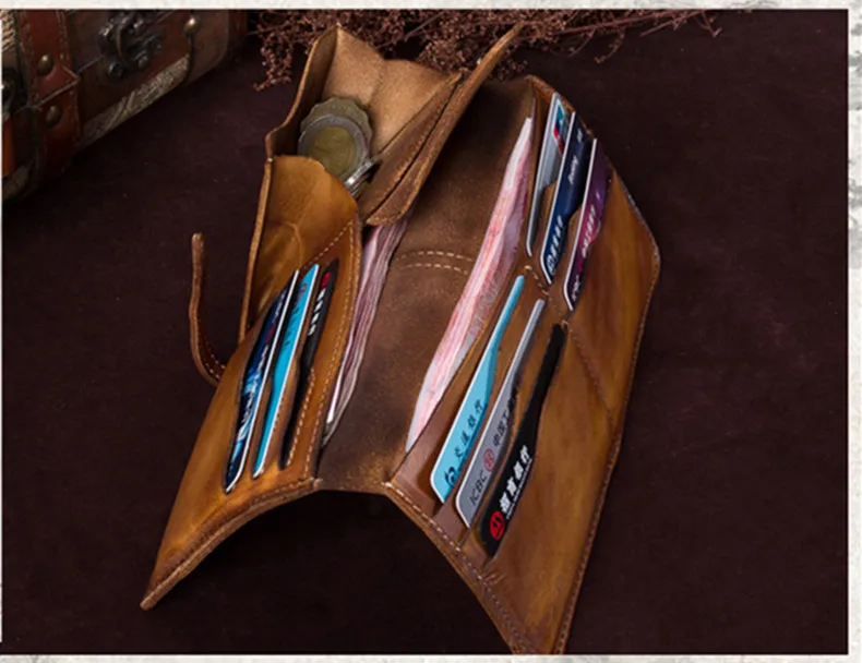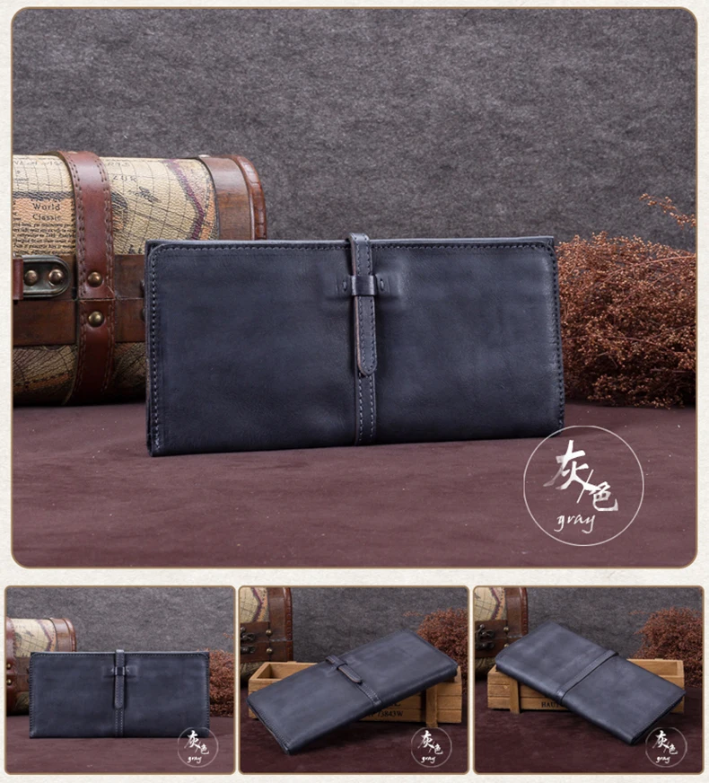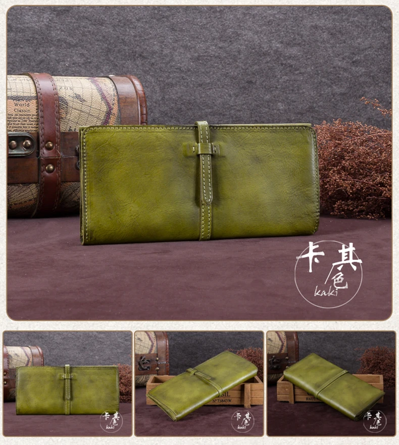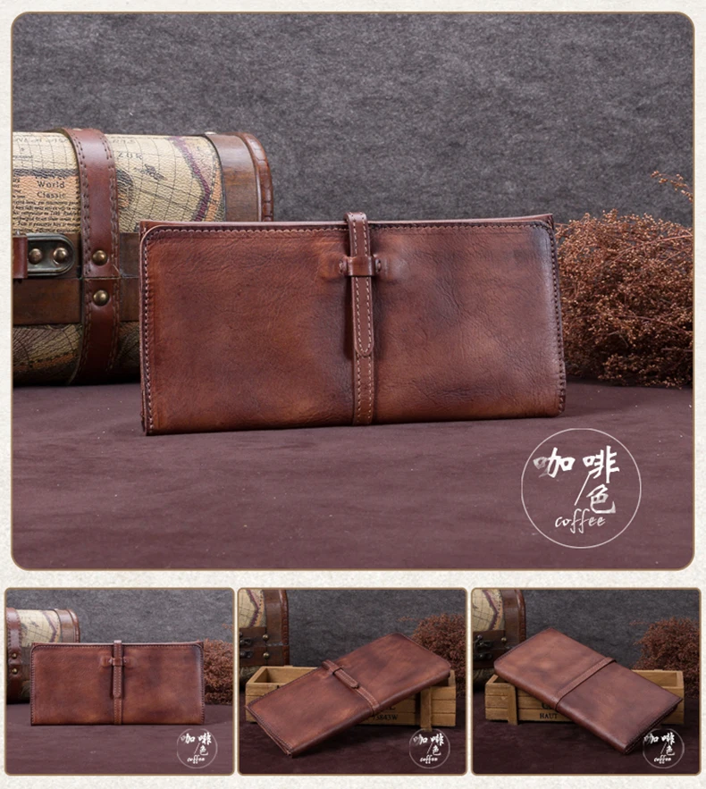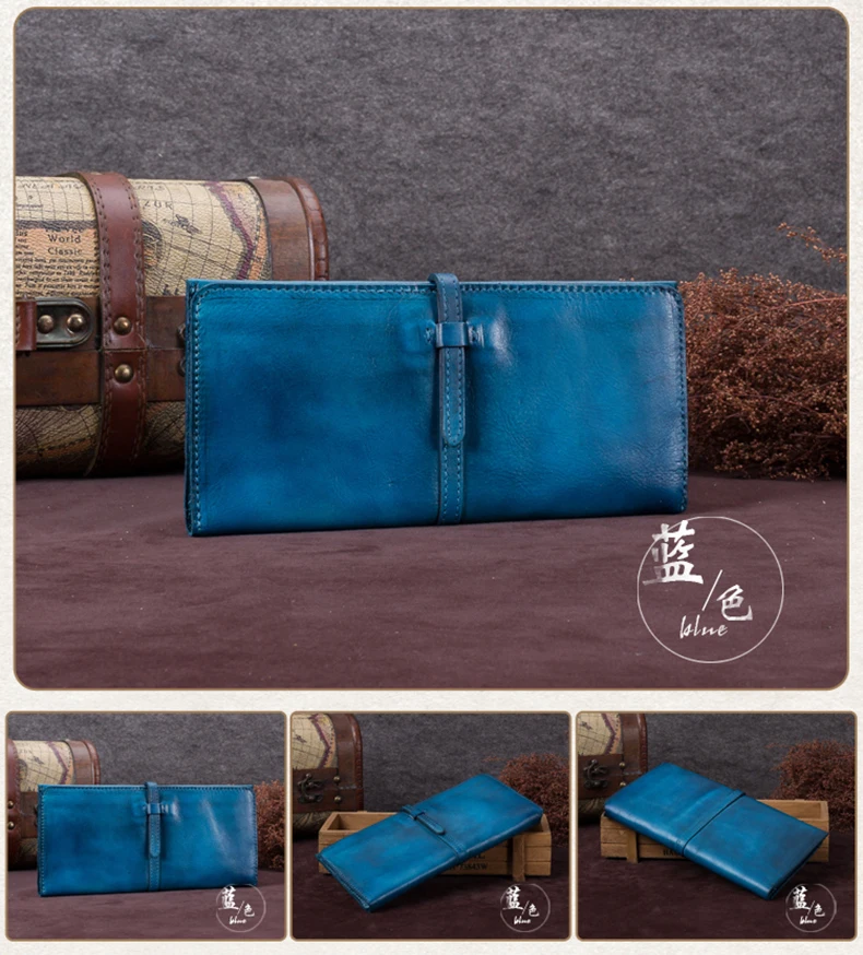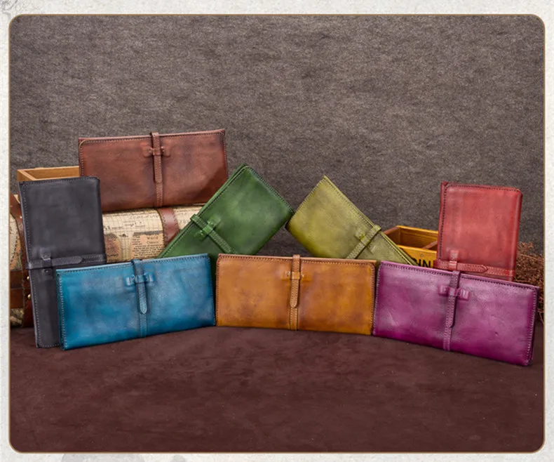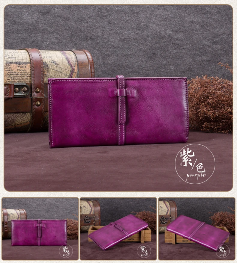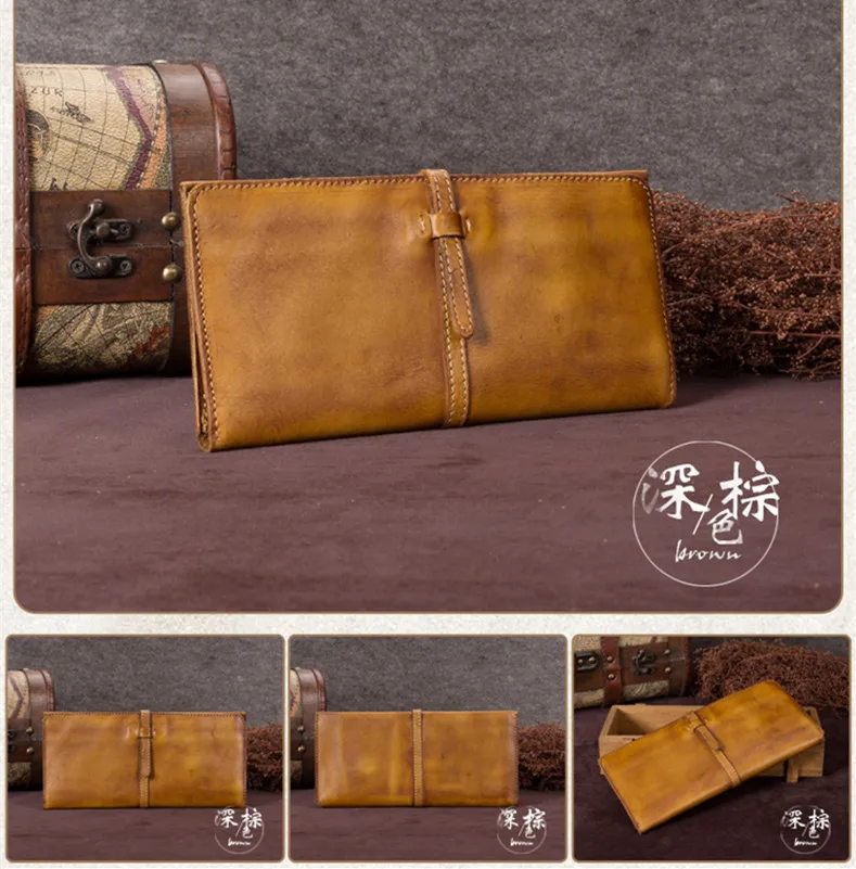 Vintage Genuine Leather Women's Wallet Female Cowhide Long Card Holder Wallets Large Capacity Coin Purses Phone Clutch Bags BJYL