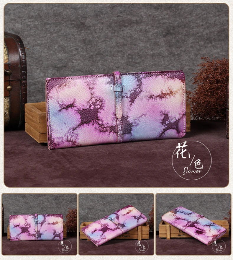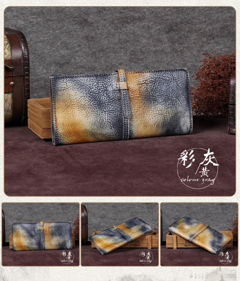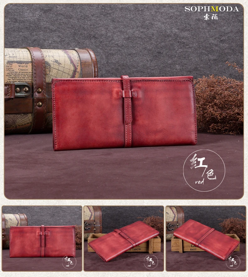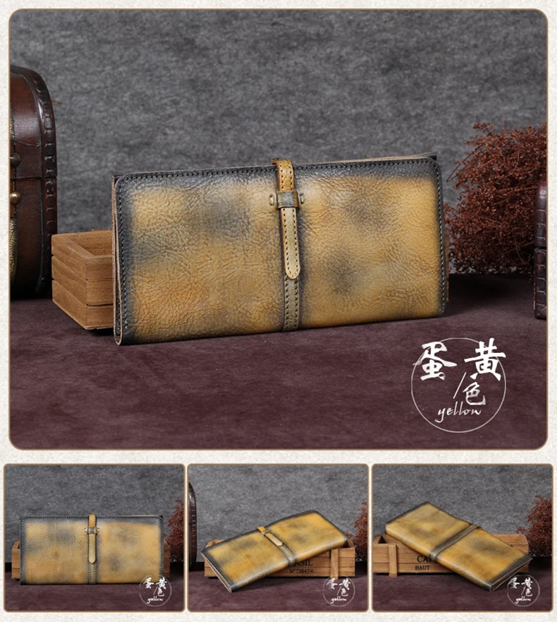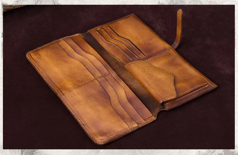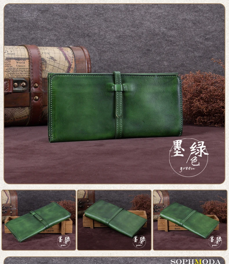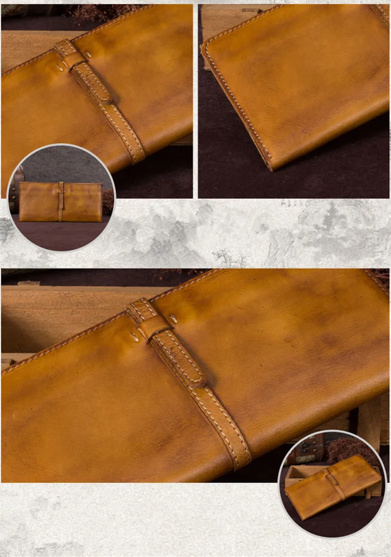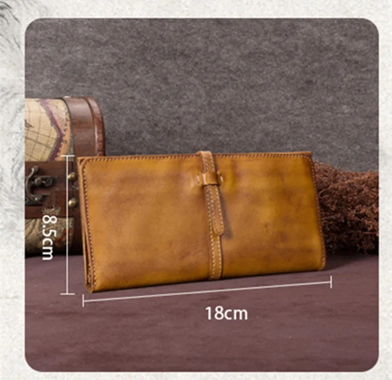 Vintage Genuine Leather Women's Wallet Female Cowhide Long Card Holder Wallets Large Capacity Coin Purses Phone Clutch Bags BJYL