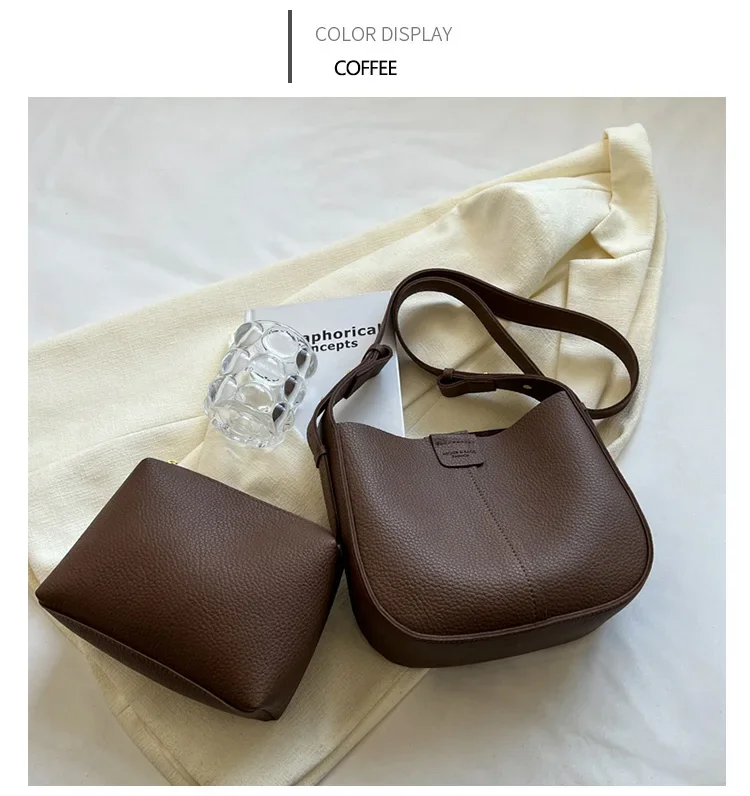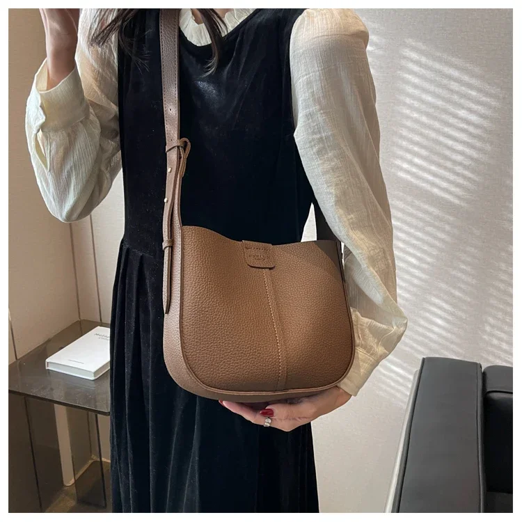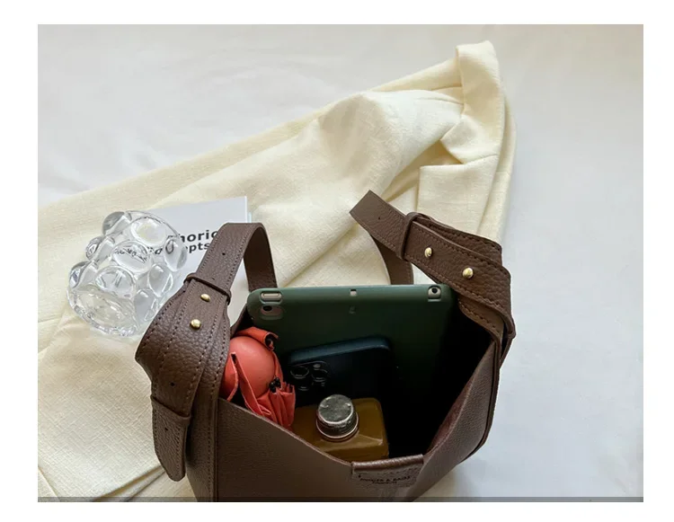 Vintage Handbags for Women Fashion Texture PU Leather Shoulder Crossbody Bag Large Capacity Female Bucket Totes New