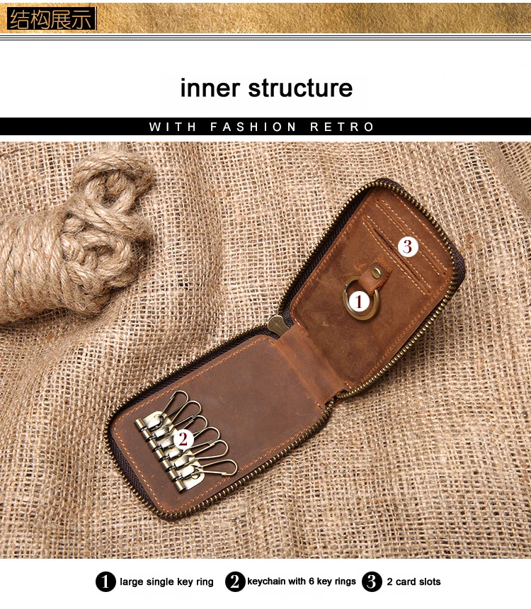 Vintage Key Holder men Genuine Leather key holder Leather key wallet men housekeeper women key case smart key organizer pouch