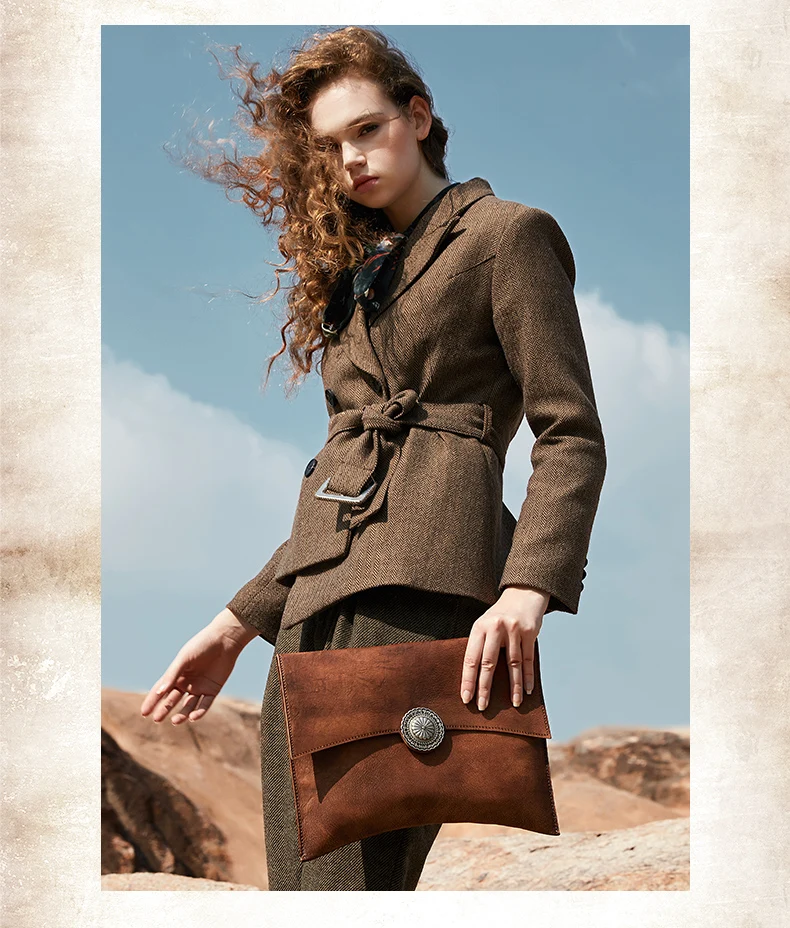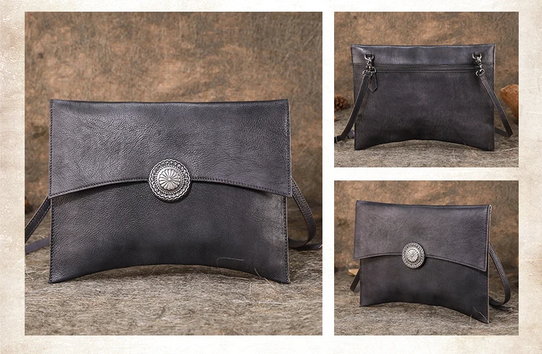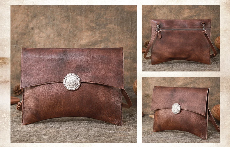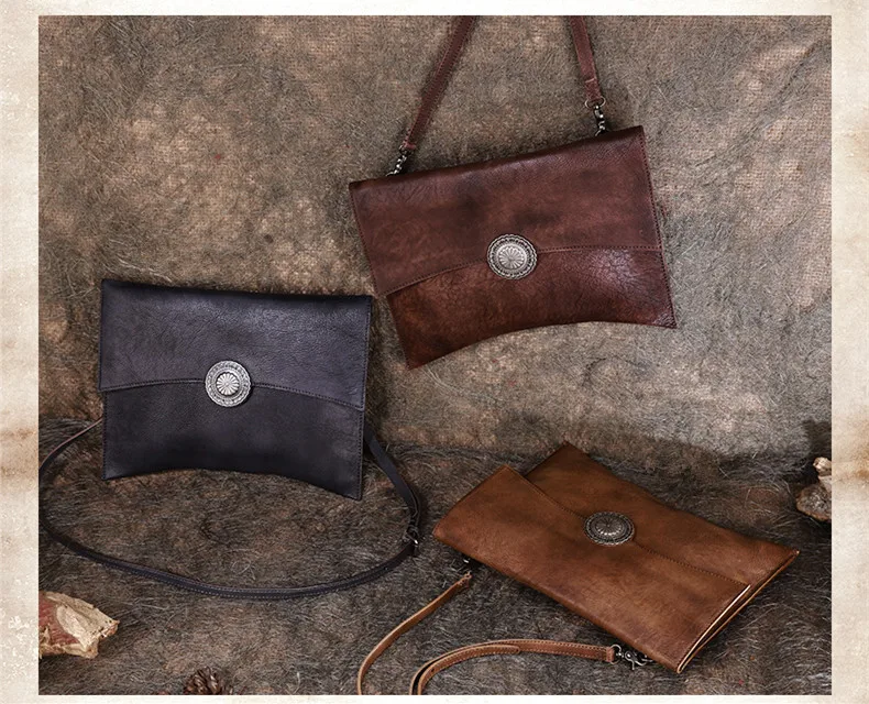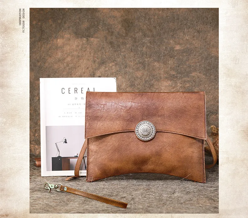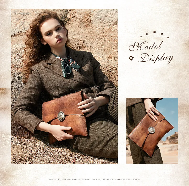 Vintage Leather clutch bag women shoulder messenger bag ladies female cowhide envelope bag large capacity cross-body clutch bags