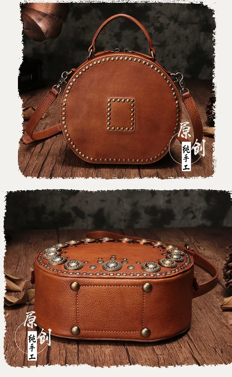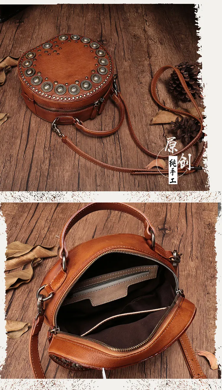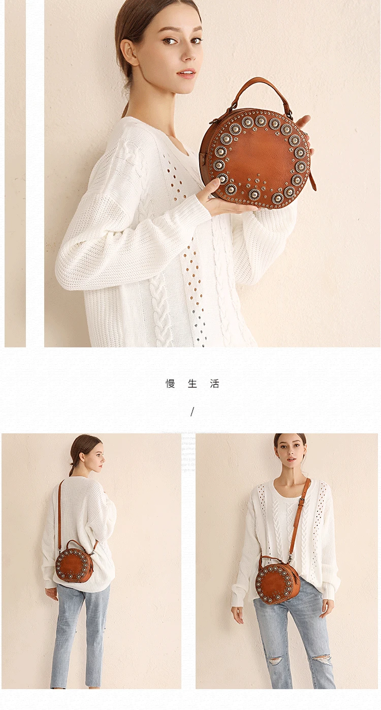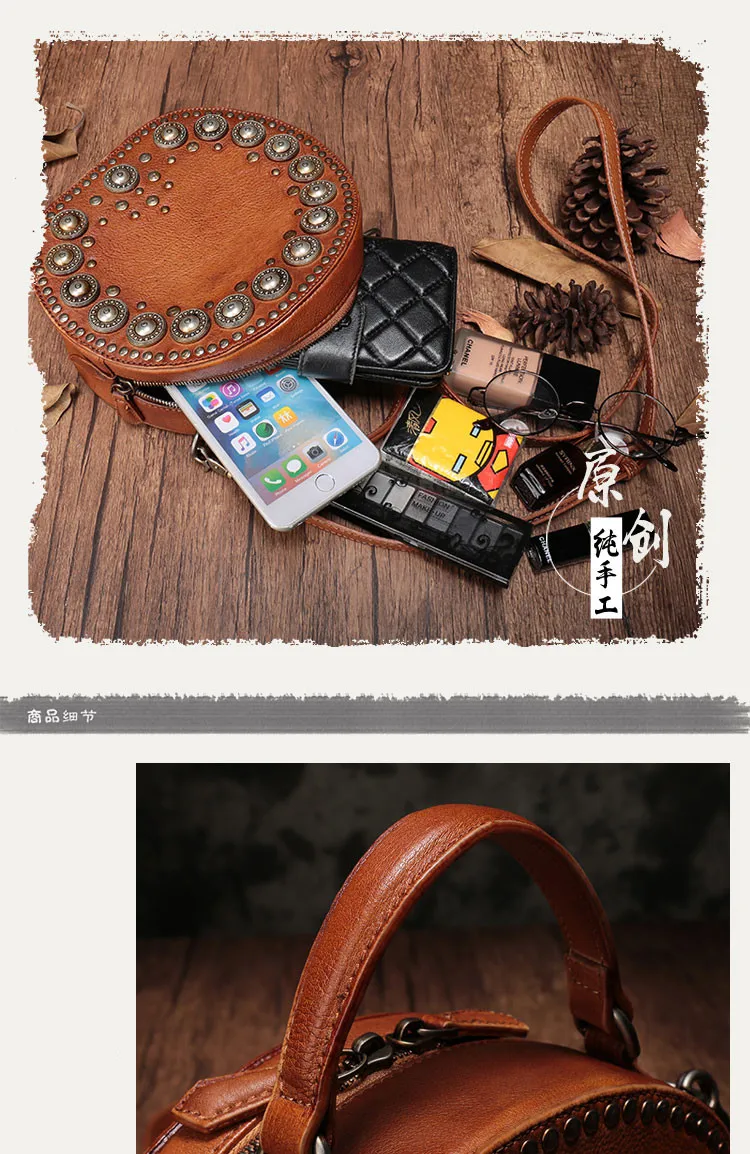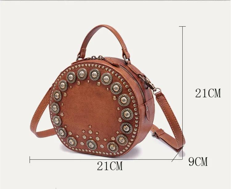 Vintage Leather Women Handbag Diagonal Cross-body Bag Female 2020 New Small Shoulder Bag Messenger Bags Retro Round Wild Leather