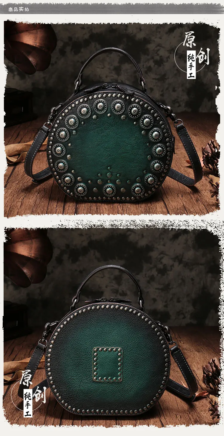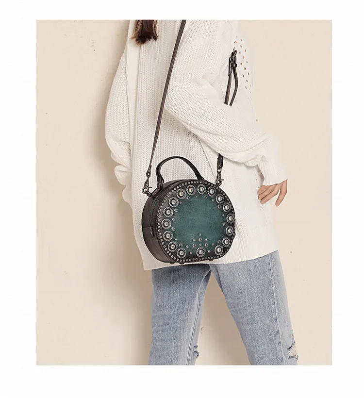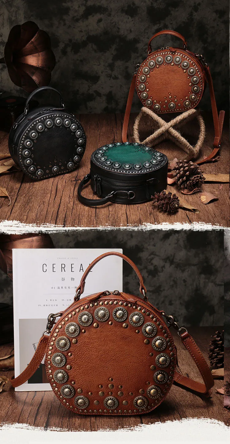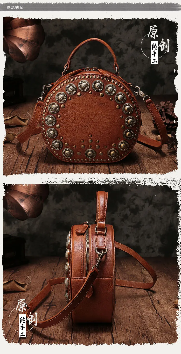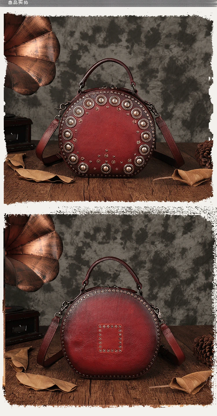Vintage Leather Women Handbag Diagonal Cross-body Bag Female 2020 New Small Shoulder Bag Messenger Bags Retro Round Wild Leather