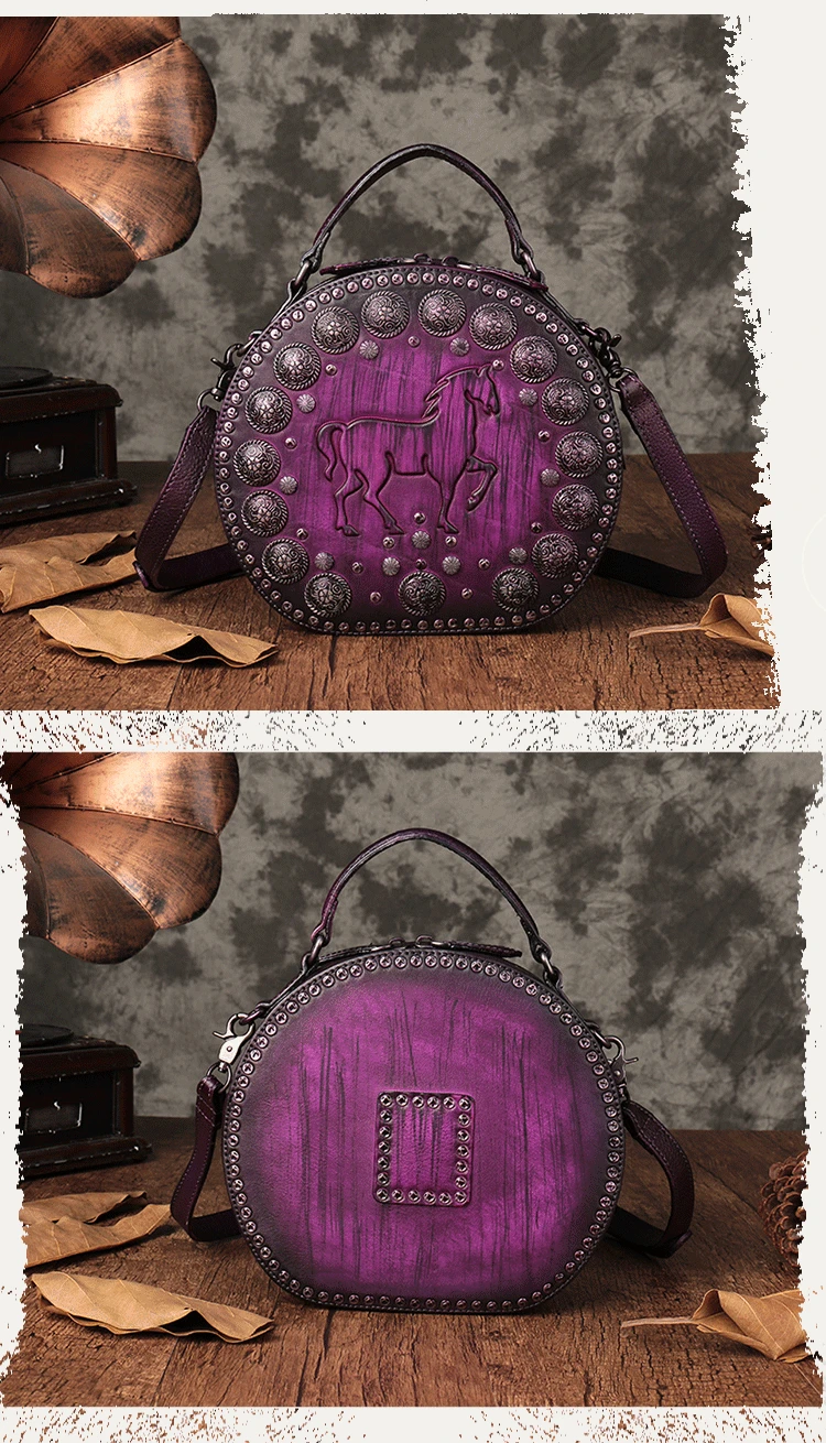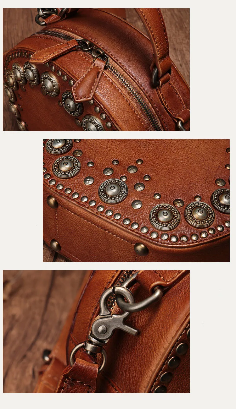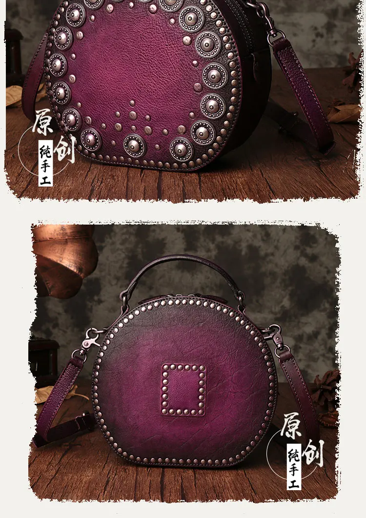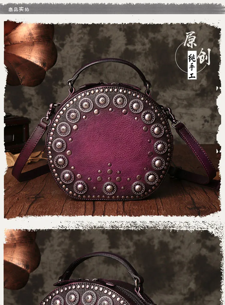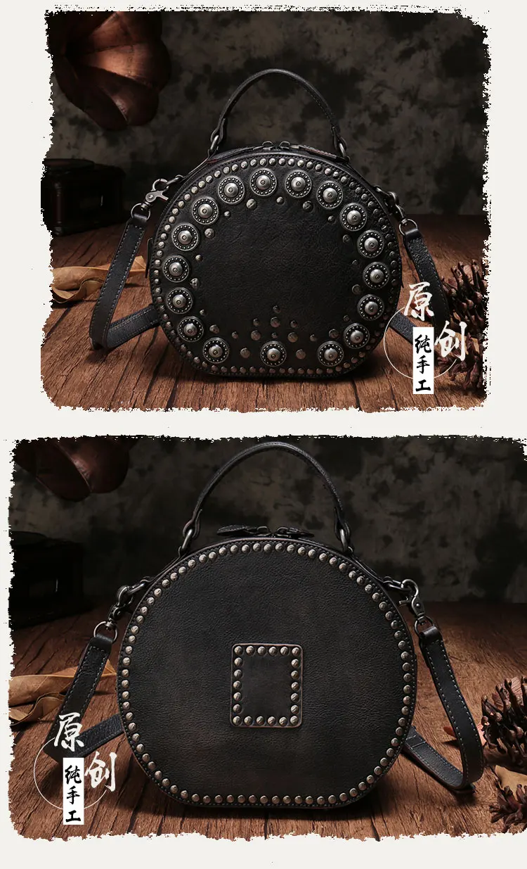 Vintage Leather Women Handbag Diagonal Cross-body Bag Female 2020 New Small Shoulder Bag Messenger Bags Retro Round Wild Leather
