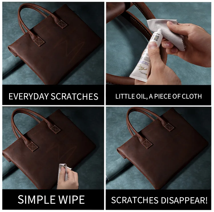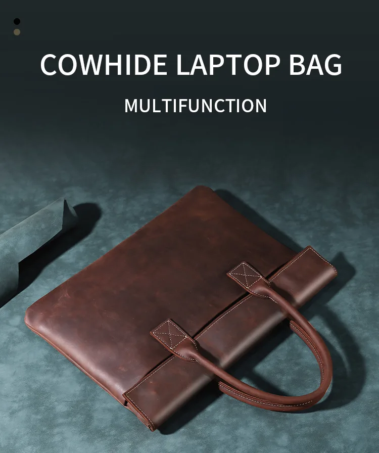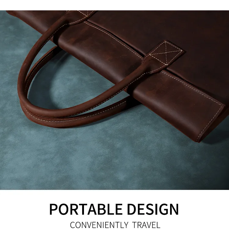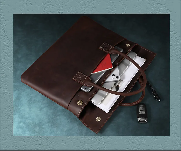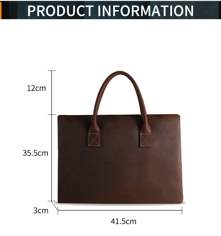Vintage Men Crazy Horse Genuine Leather Thin Briefcase 17 Inch Laptop Cowhide Men'S Documents Bag Man Business Office Handbag