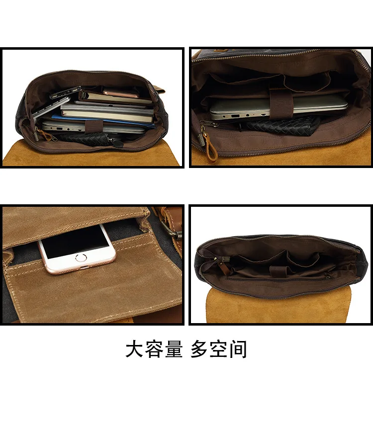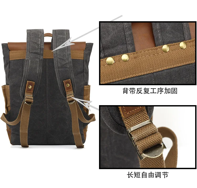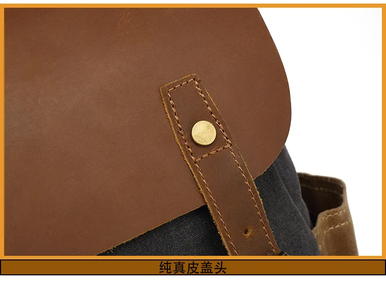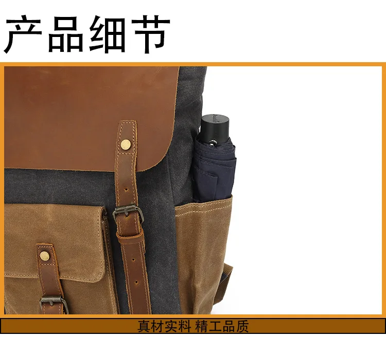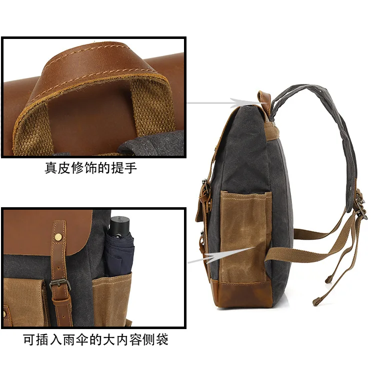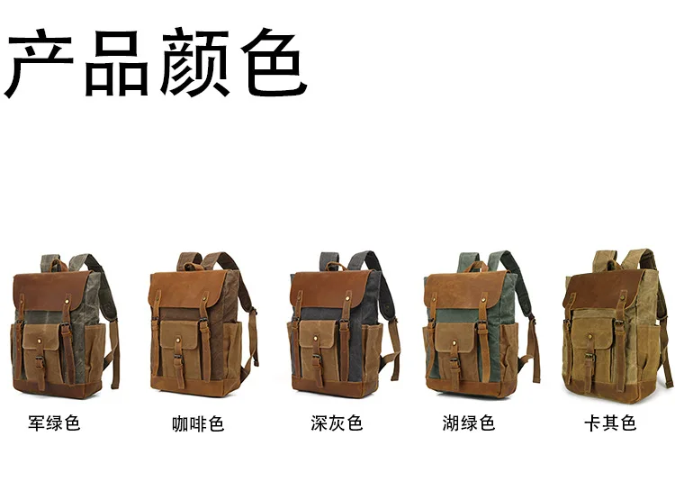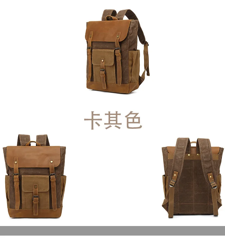 Vintage Outdoor Men Rucksack Canvas Bag Crazy Horse Leather Travel Backpack Waxed Canvas Waterproof Laptop Packsack