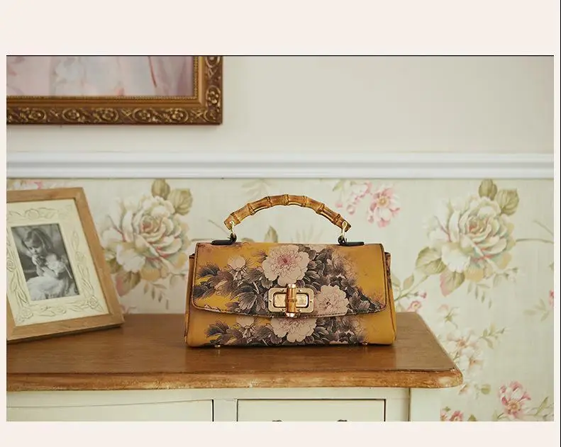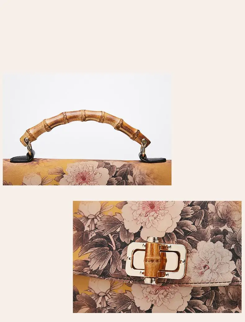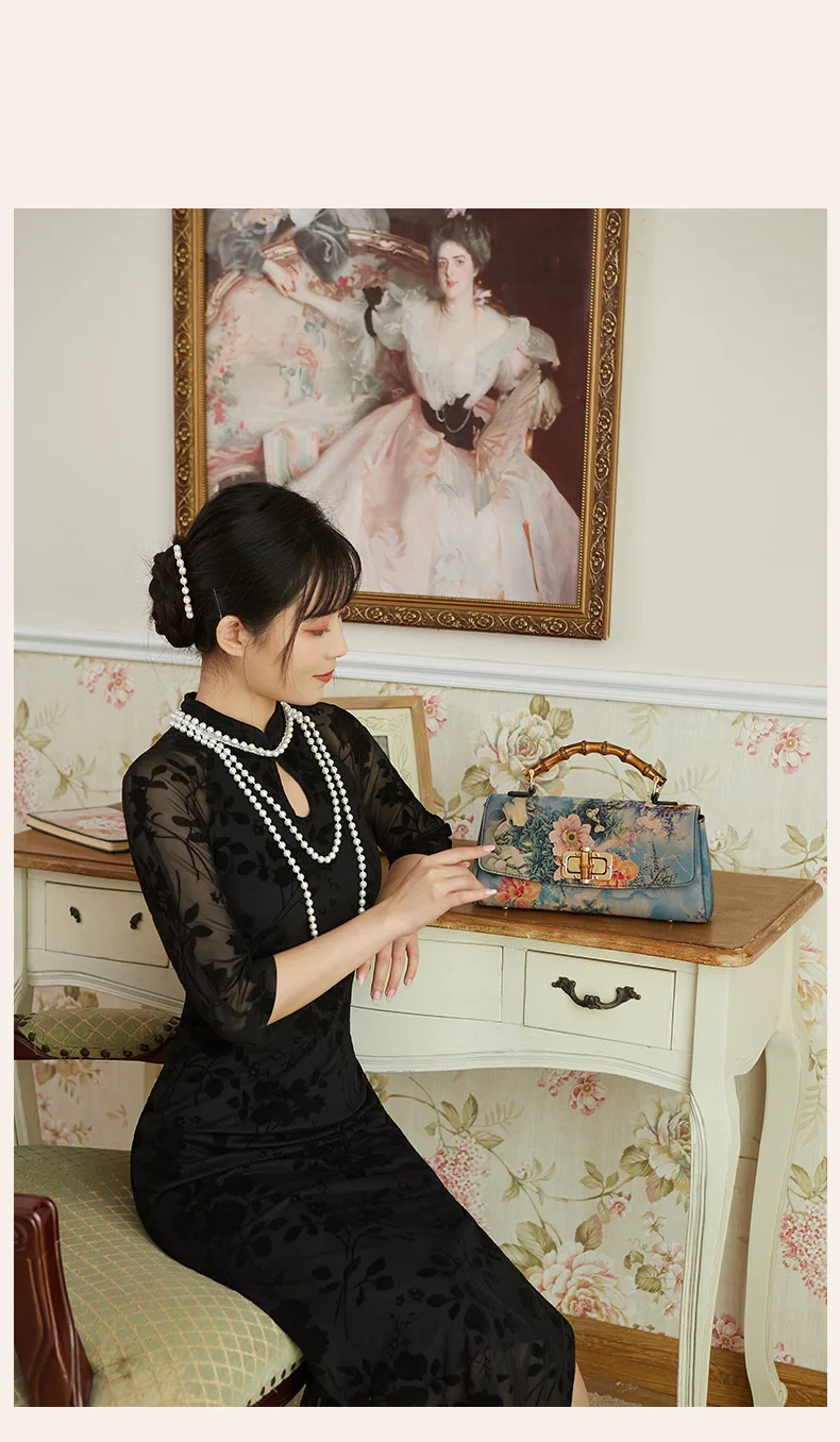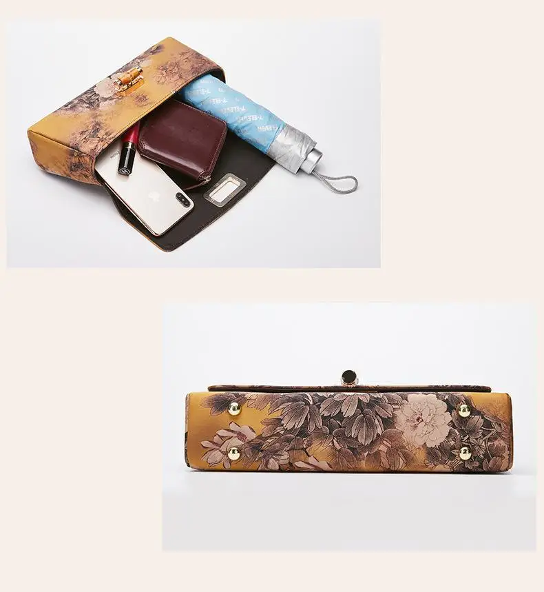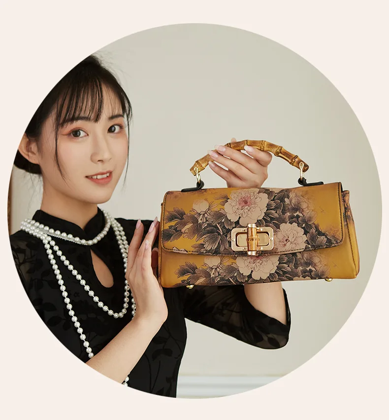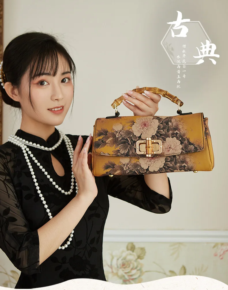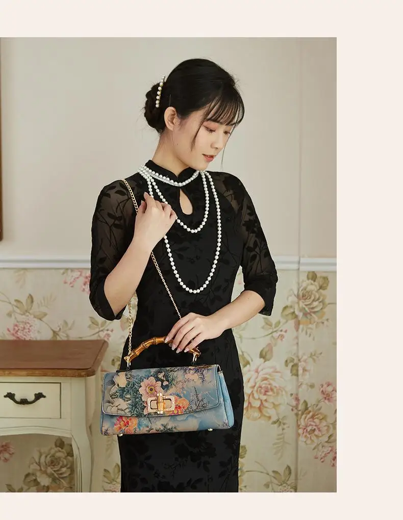Vintage Print Cheongsam Leather Handbag Women Bag Luxury Designer Handmade 2024 New Ladies Shoulder & Crossbody Bags