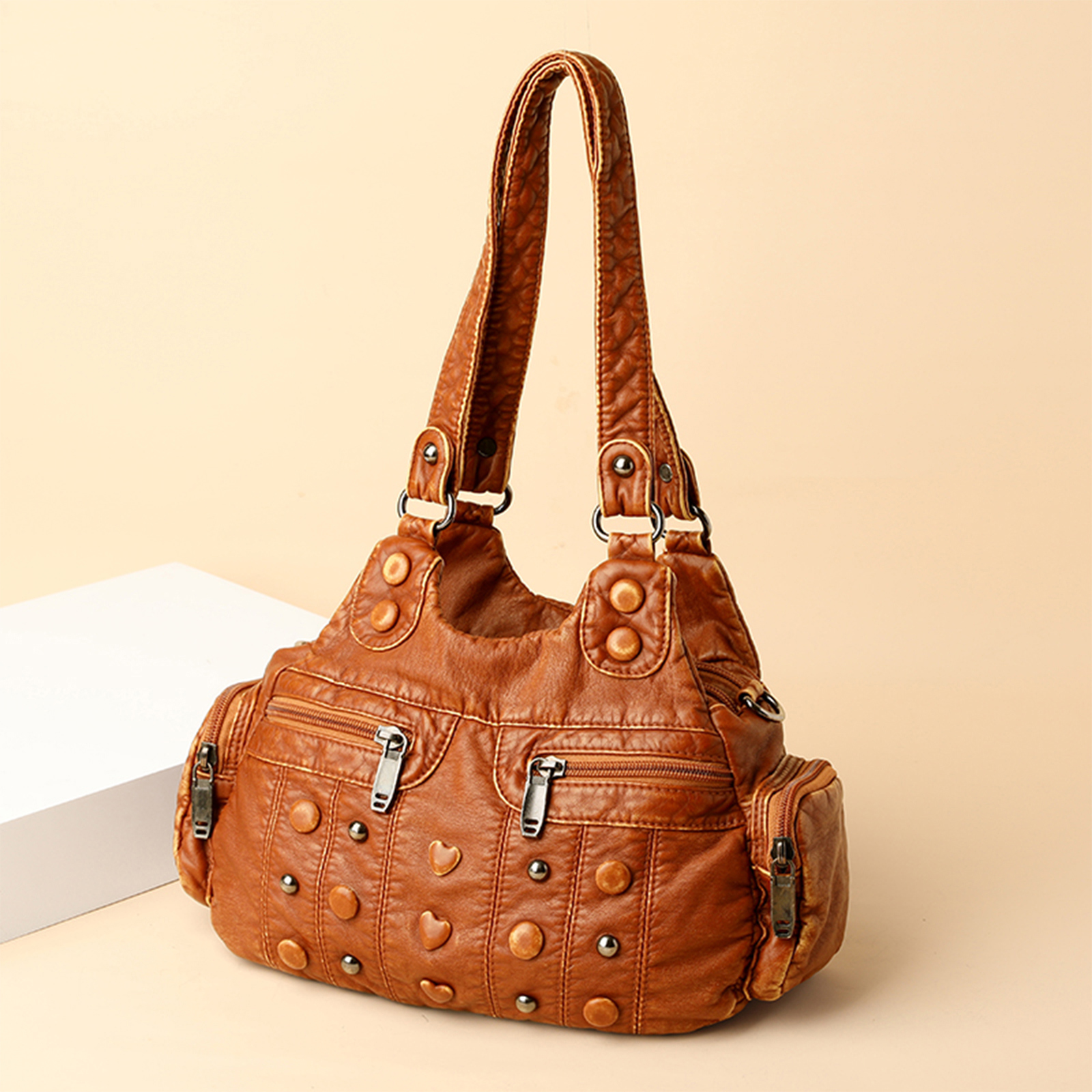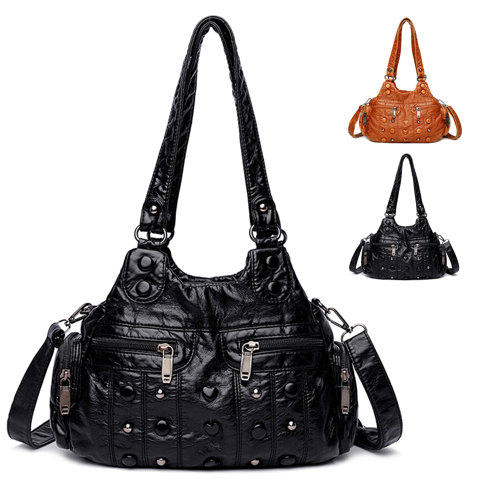 Vintage PU Leather Women Handbag Soft Crossbody Shoulder Bag Tote Double Handles