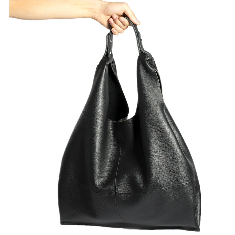 Vintage Shopping bag Natural Cow Leather crescent bag large capacity super soft full grain shoulder bag fashion large handbag