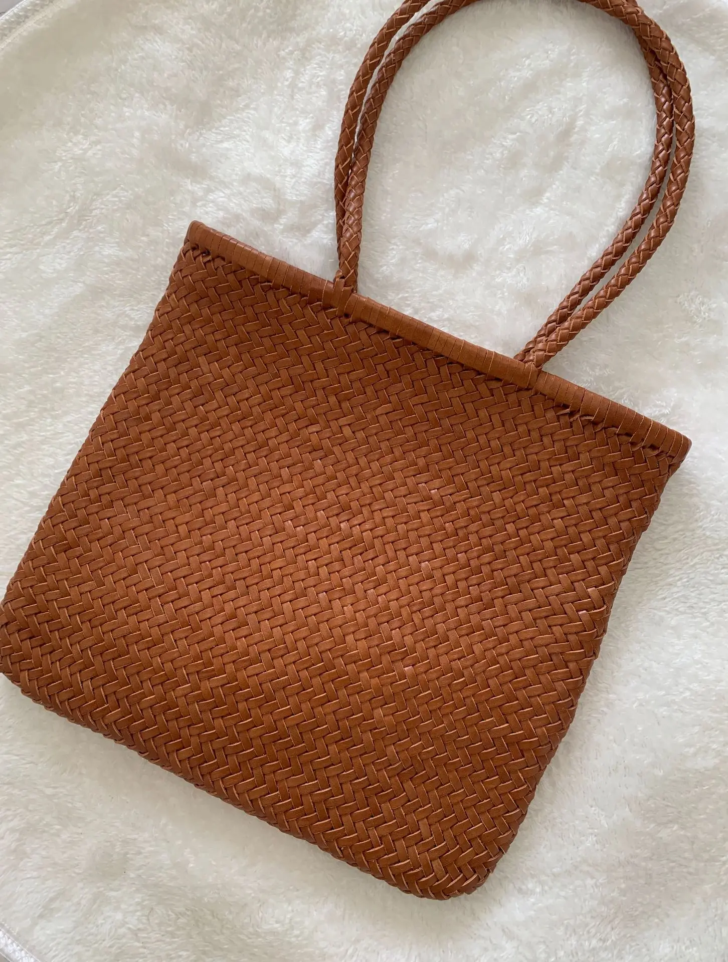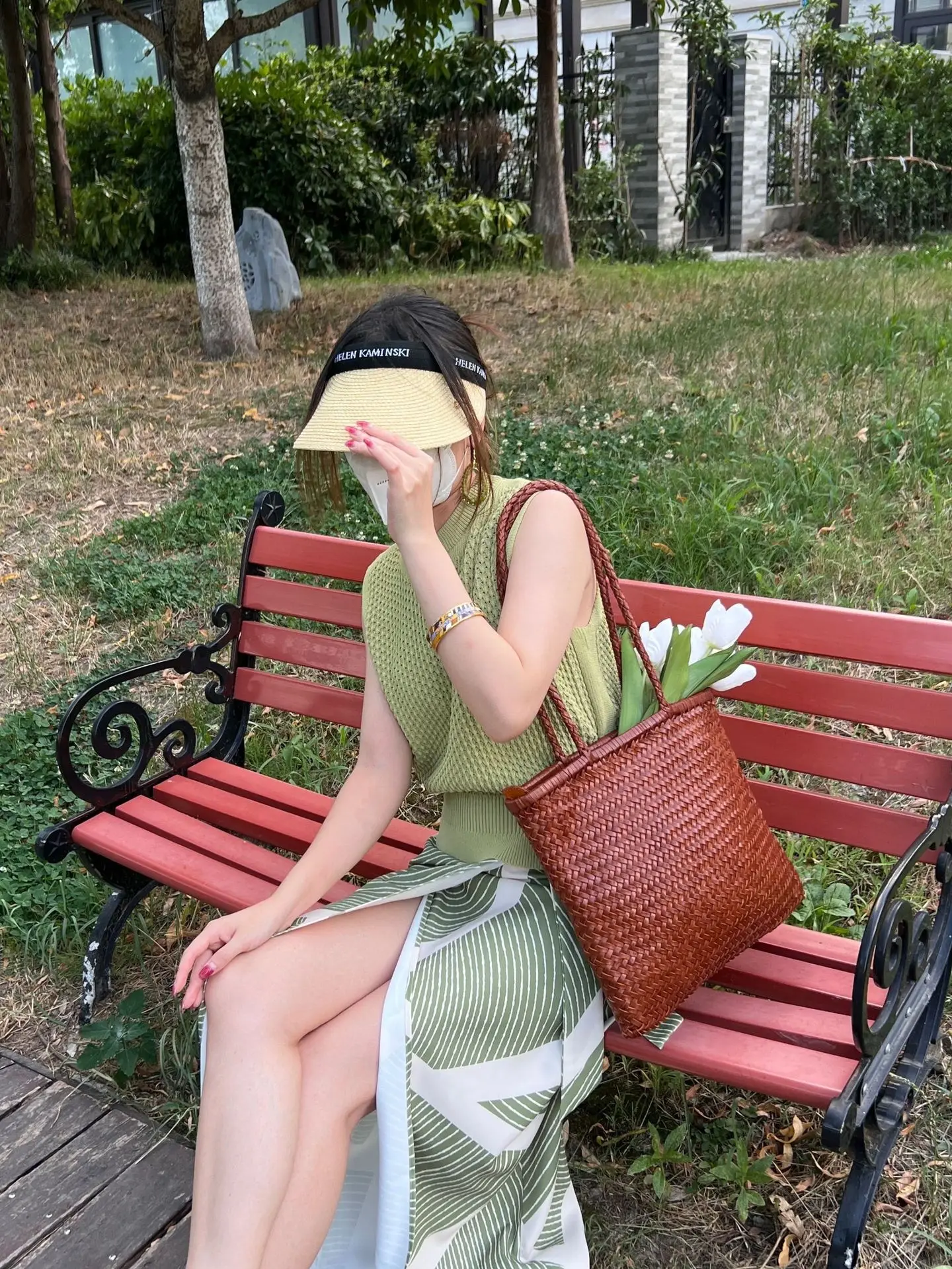 Vintage Shopping Bag New hand-woven derma bag hollow shoulder Japanese style Women Shoulder with Casual Woven Beach bag