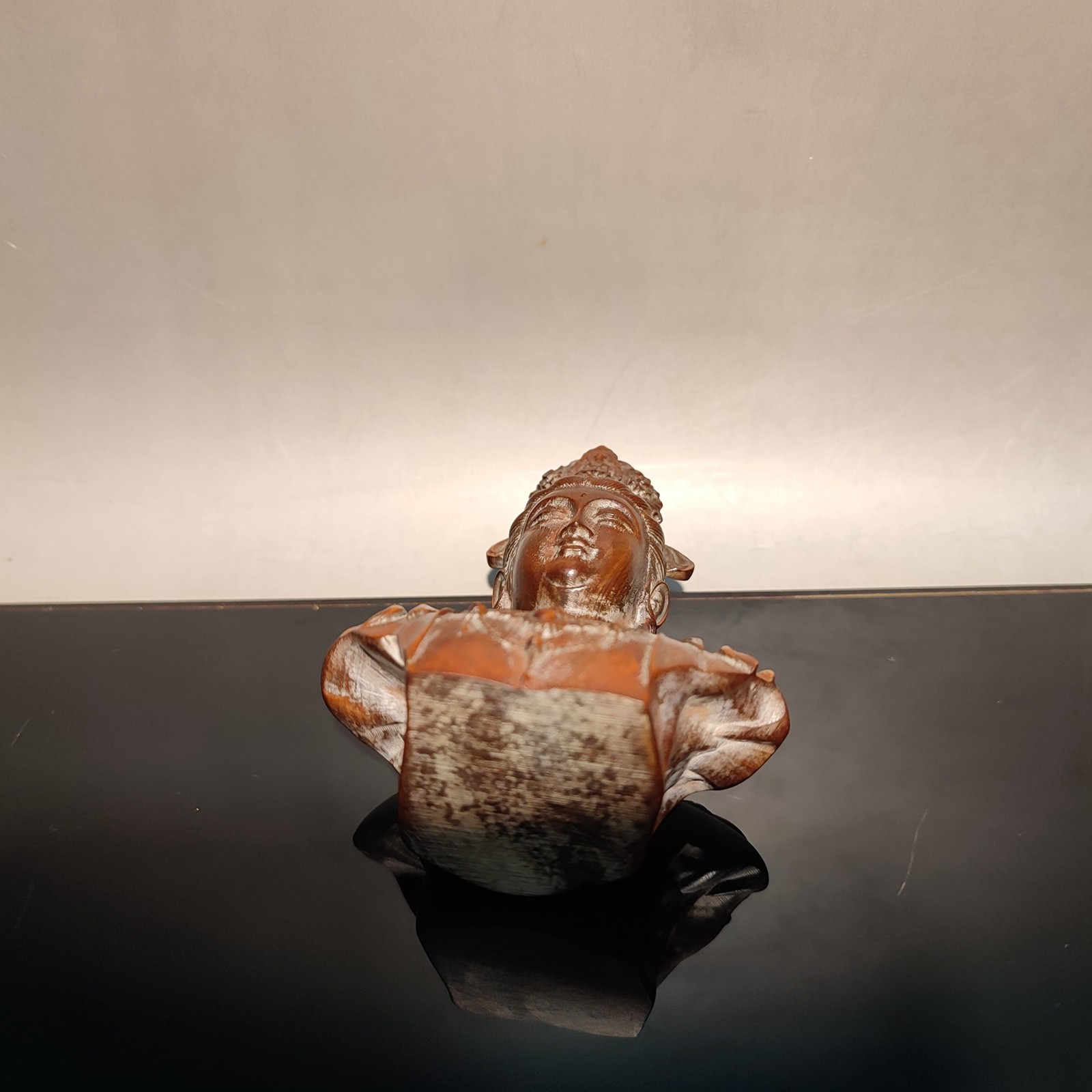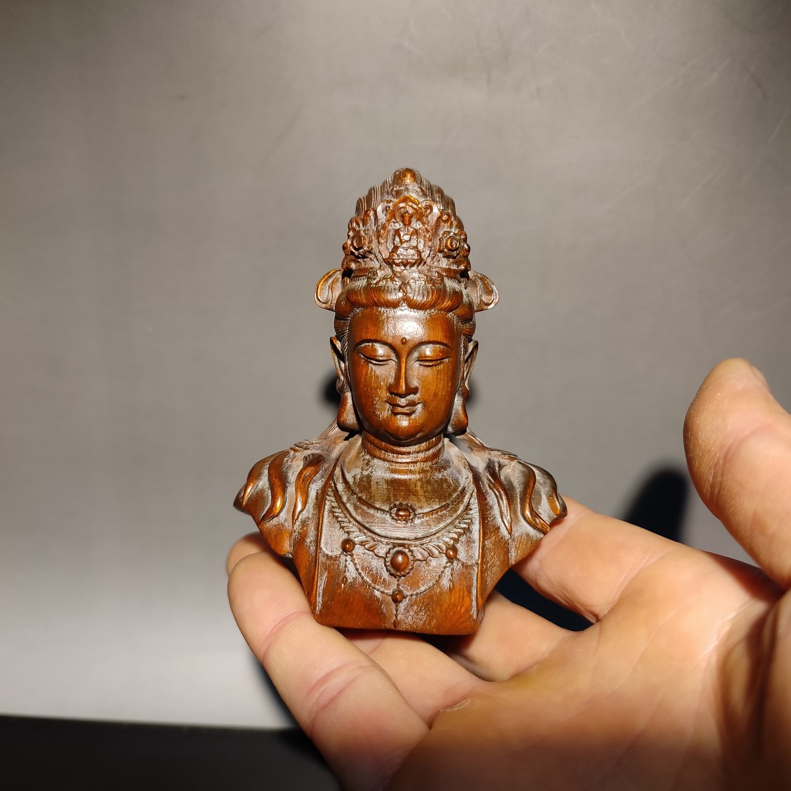 vintage wood wooden carved carving figure kuan yin antique sculpture bust mini Size: (3.34x2.56x1.57) "inch= 8.5*6.5*4 cm Weight: 51 g = pound = 1.8 oz