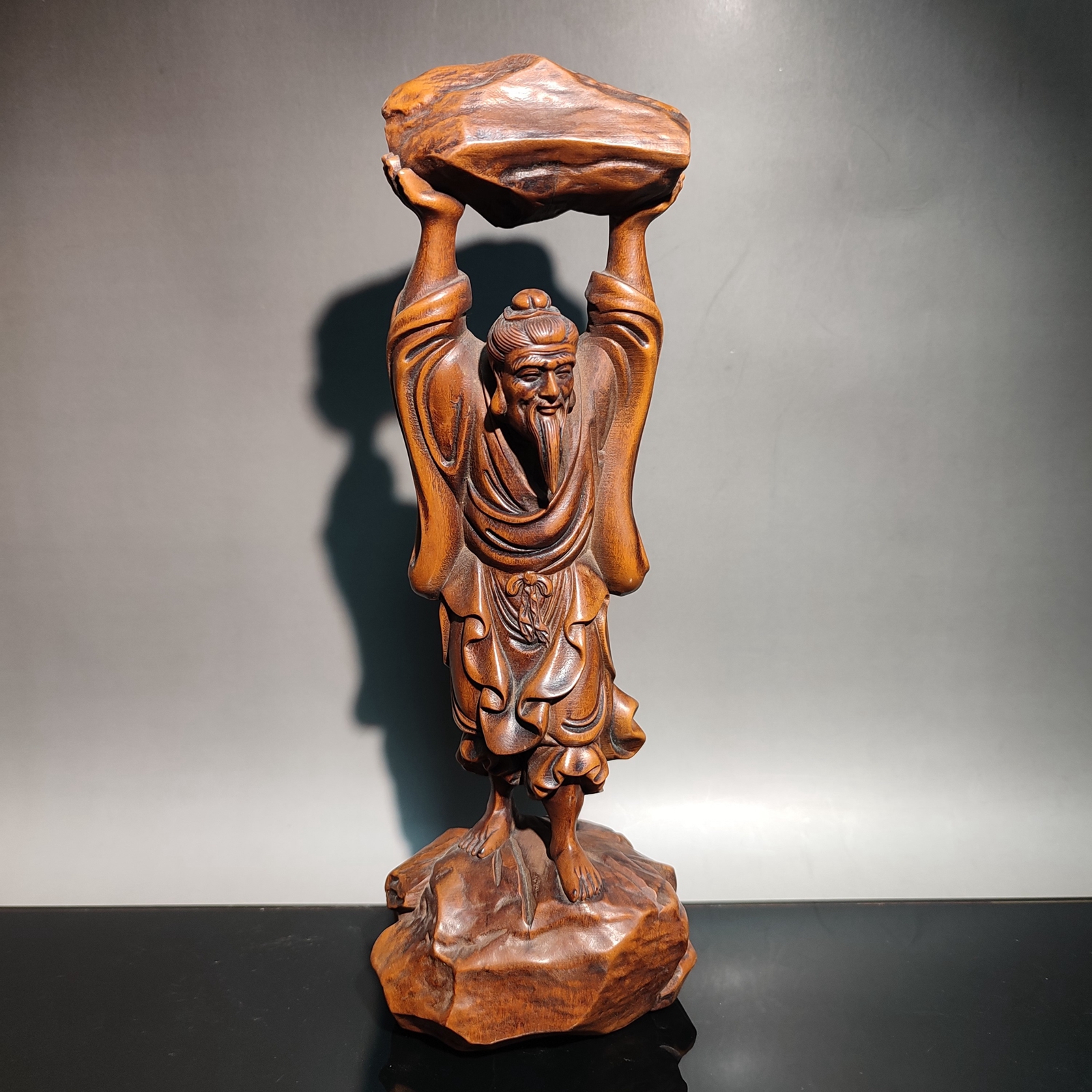 vintage wooden ornament carving Figurines Foolish Old Man, who removed mountains