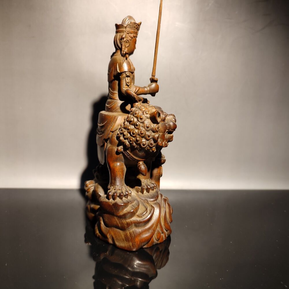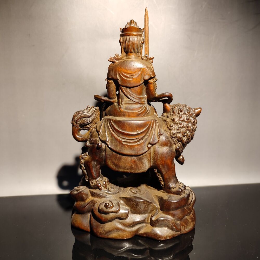 vintage wooden ornaments Wood carving Buddhism Maňjuśrī bodhisattva lion statue