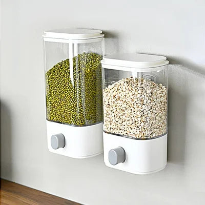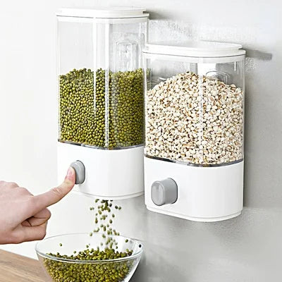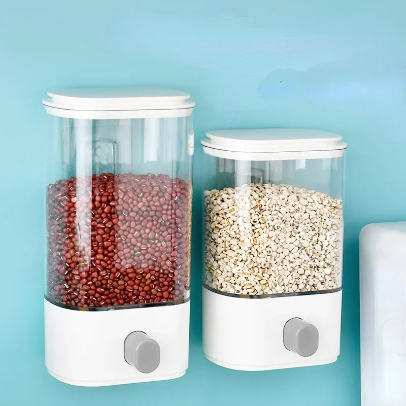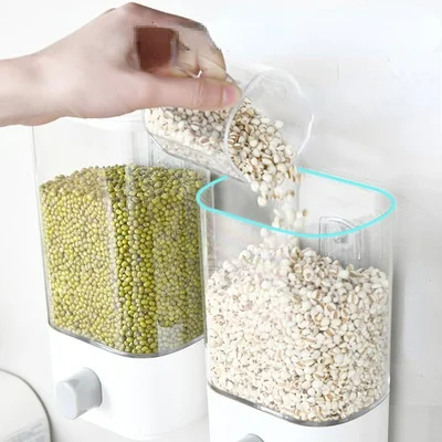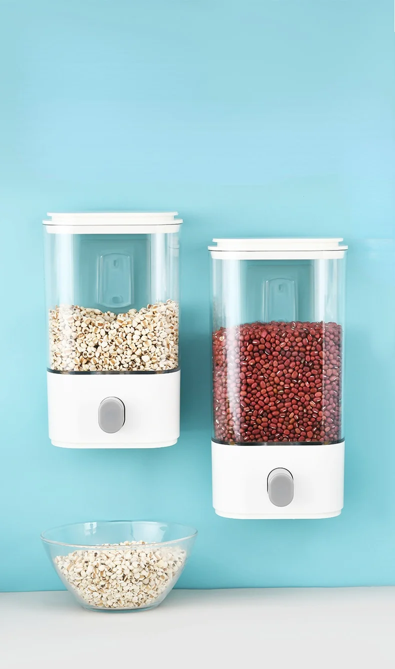 Wall Mounted Divided Rice And Cereal Dispenser Moisture Proof Automatic Racks Sealed Food Storage Box Rice Storage Container