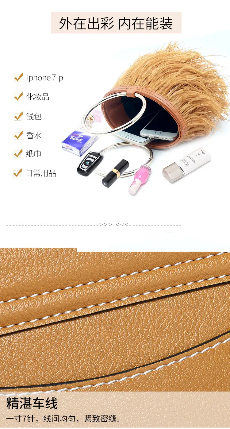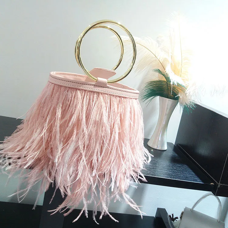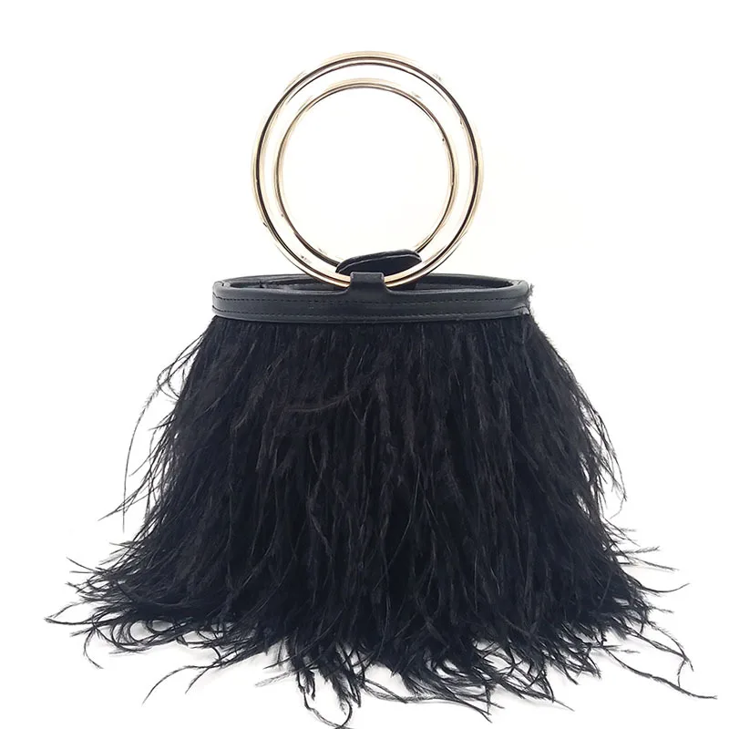 Wedding Bag Ostrich Feather Bucket Handbag for Women Luxury Fashion Purses and Handbags Designer Party Clutch Chain Shoulder Bag