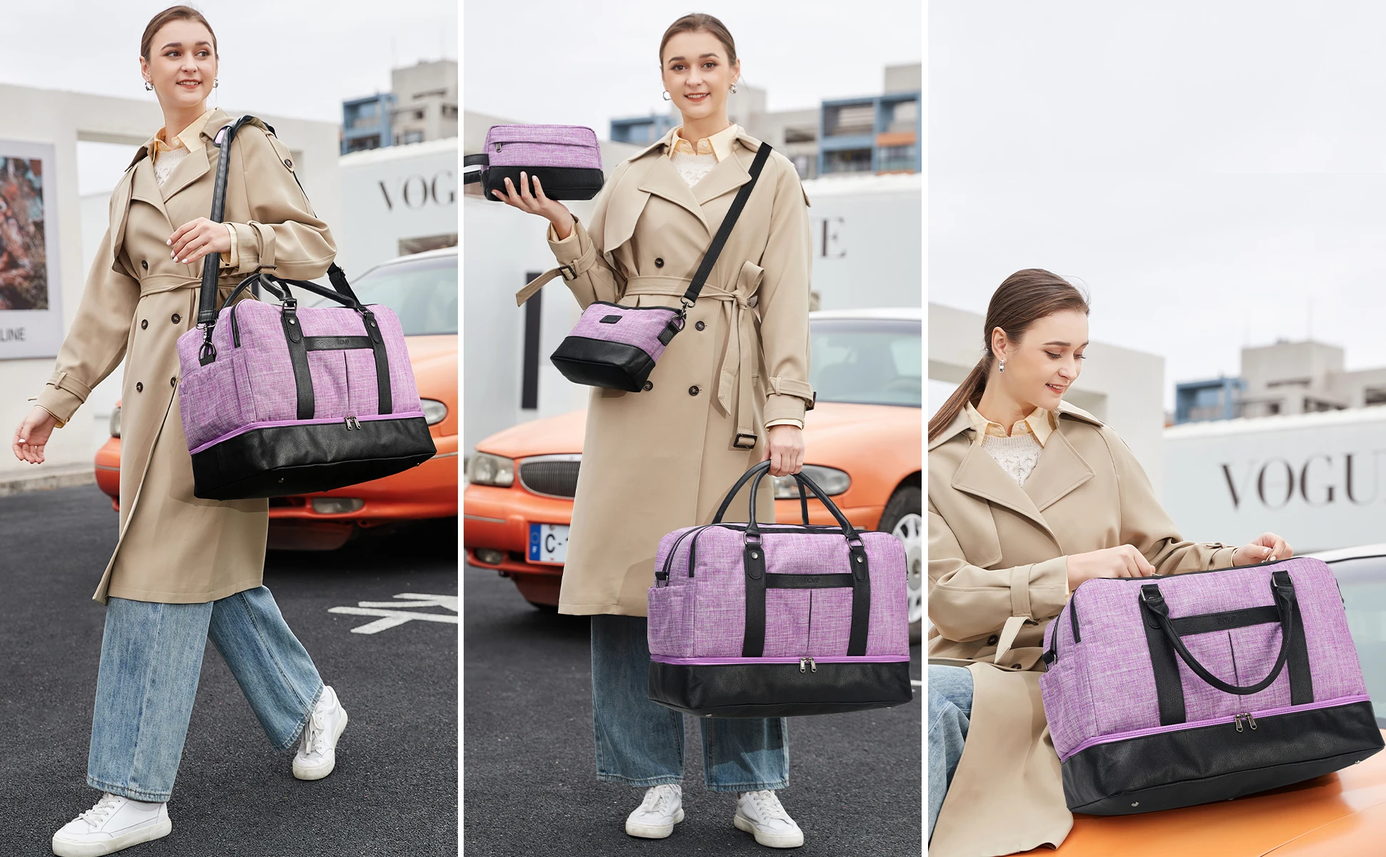 【3Pcs Set Weekender Bag】 Our BOVIP travel duffel bag comes with 1 Canvas weekender bag, 1 messenger bag, 1 storage bag, 2 adjustable & detachable shoulder straps (wide for the weekender bag and thin for the messenger bag) and shoe compartment. The weekender bags for women is mainly made of high-quality canvas and PU leather. Suitable for weekend trips, short-term business trips, daily trips, family vacations, overnight stays, sports and fitness, beach vacations.