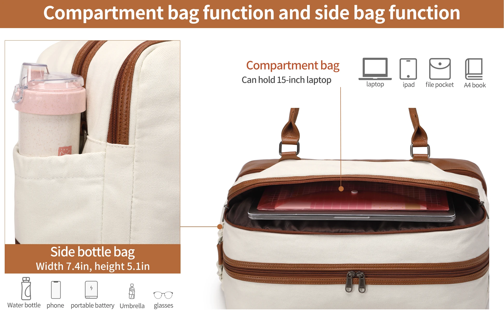 This womens overnight bag has a large capacity and can hold clothes, footwear, toiletries, cosmetics, shoes, electronic equipment, books, and snacks. Also suitable for business trips, it can hold 15 inch laptop, and you can work at any time.