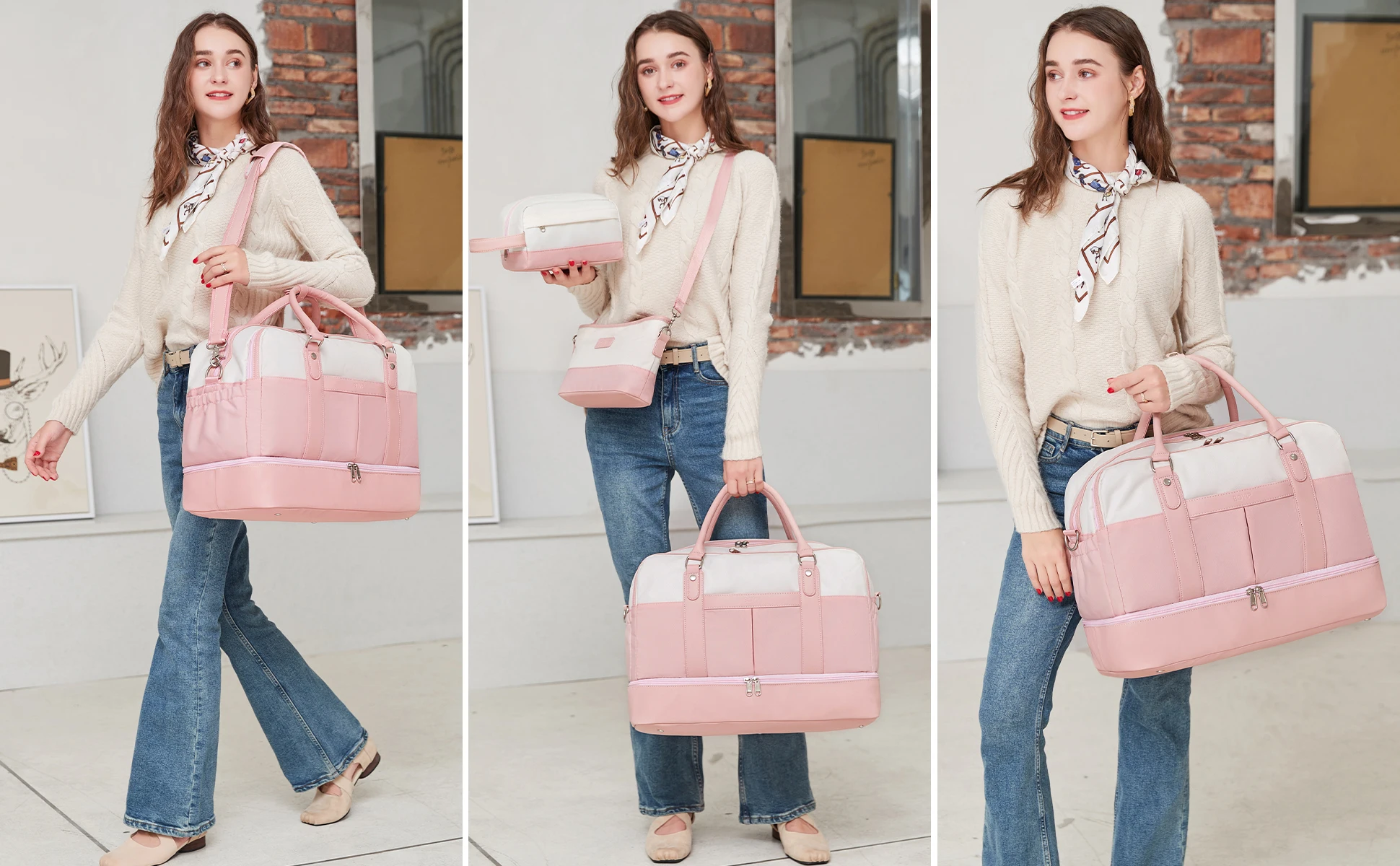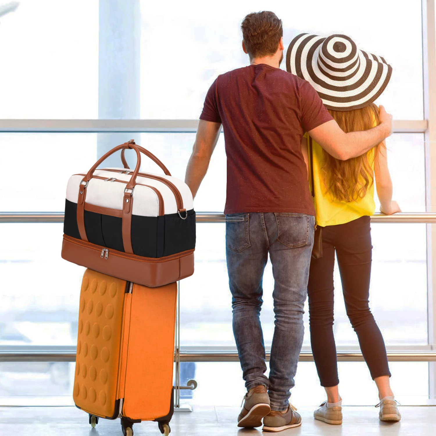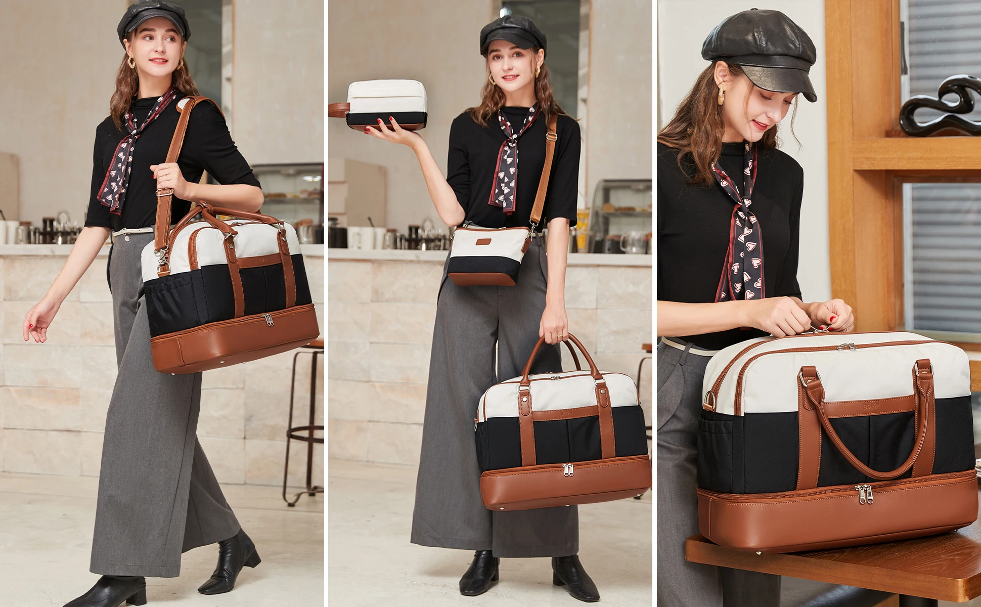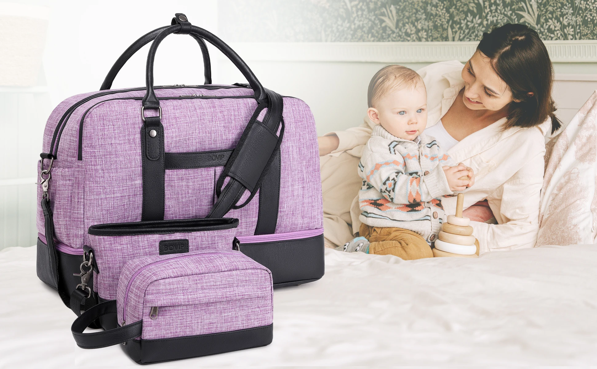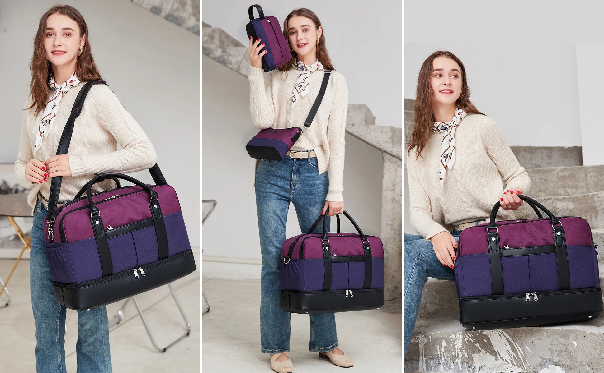 【Wide Application Travel Duffle Bag & Perfect Service】 BOVIP Womens weekender travel bag set applicable to various daily scenes.Use it as a weekend travel bag, carry on bag,overnight bag,business traveling bag,personal item travel bag,mommy bag, hospital bag, gym bag, laptop bag. Great gift choice for your families,friends and lover.If you find any problems after receiving the travel tote bag,please contact our customer service, we will help you resolve within 24 hrs.