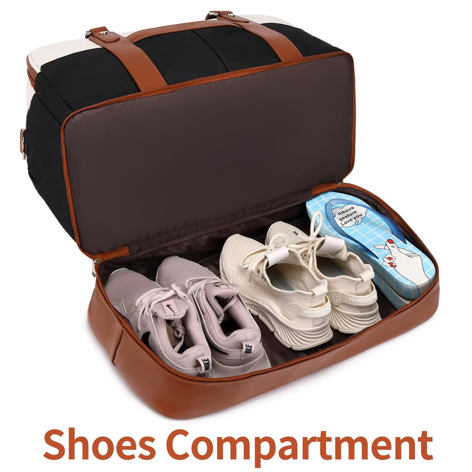 【Separate Shoe Compartment for Carry on Tote Bag】The weekender bag with shoe compartment can hold up to three pairs shoes,dirty clothes, wash bags or other things you want to store separately, separate them to keep other things in womens weekend bag clean and tidy. The thicker bottom can better carry weight.