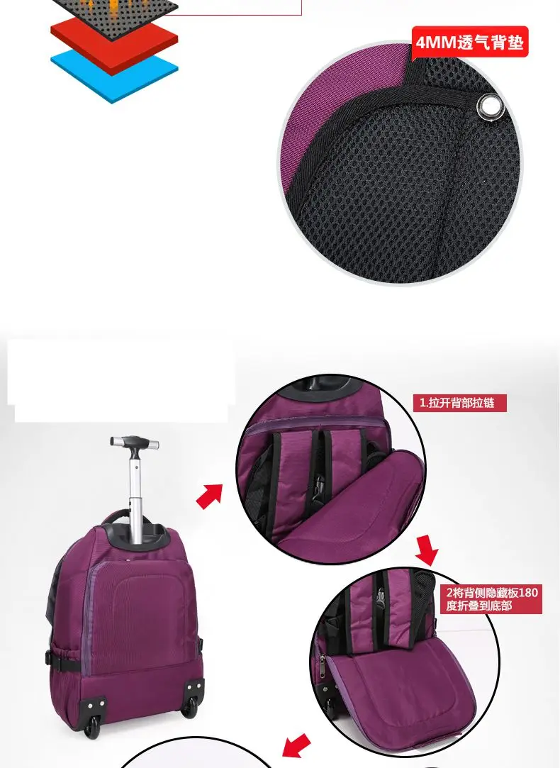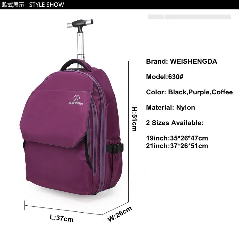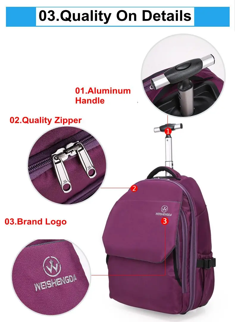 WEISHENGDA rolling luggage backpack women carry on hand Luggage bags travel Trolley backpack Bags on wheels Trolley Suitcase