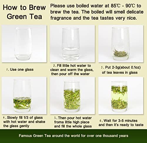 How to Brew Longjing Tea : Put three grams (one teaspoon) of tea into the cup, Pour 150ml (ratio of leaves: water should be about 1:50) of 85°C water in to the cup, and wait for about 10 minutes.
