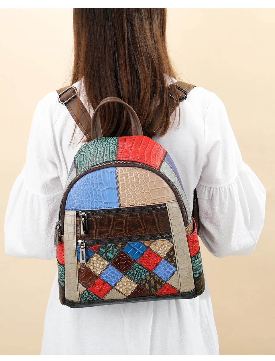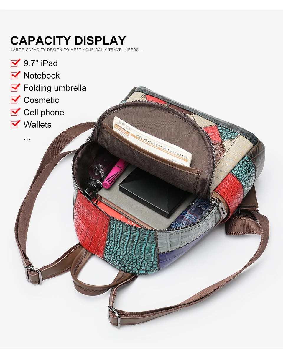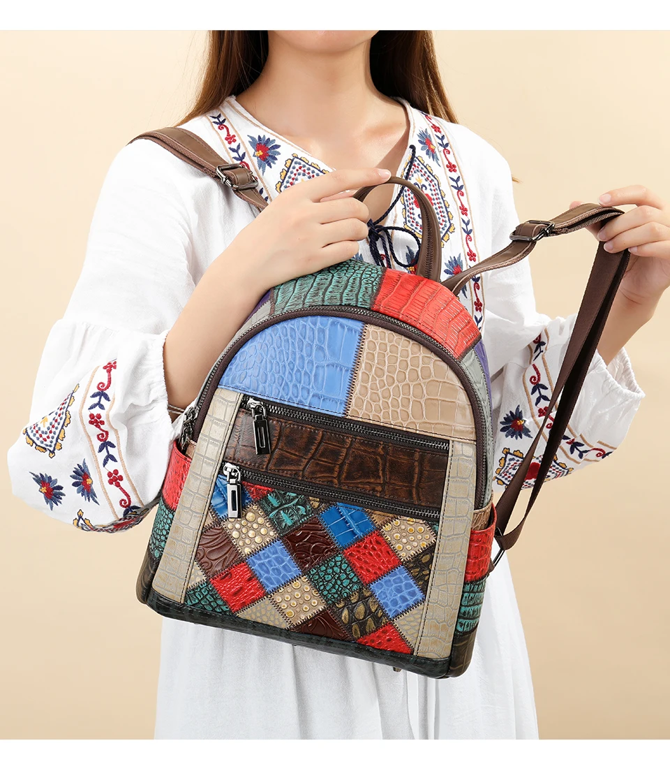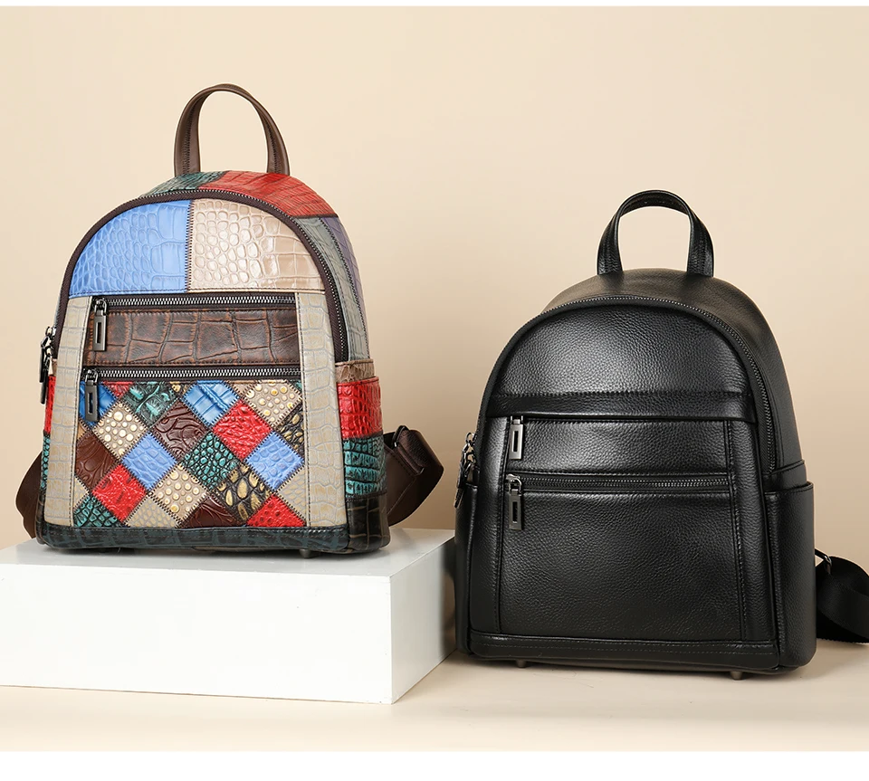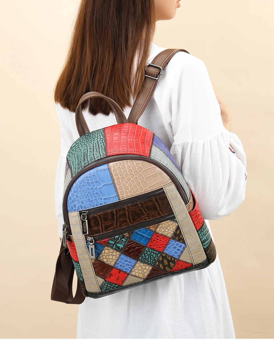 WESTAL 2023 Women's Leather Mix-color Backpack for Women Laptop Bags mochila Notebook Backpacks Luxury School Backpacks for Girl