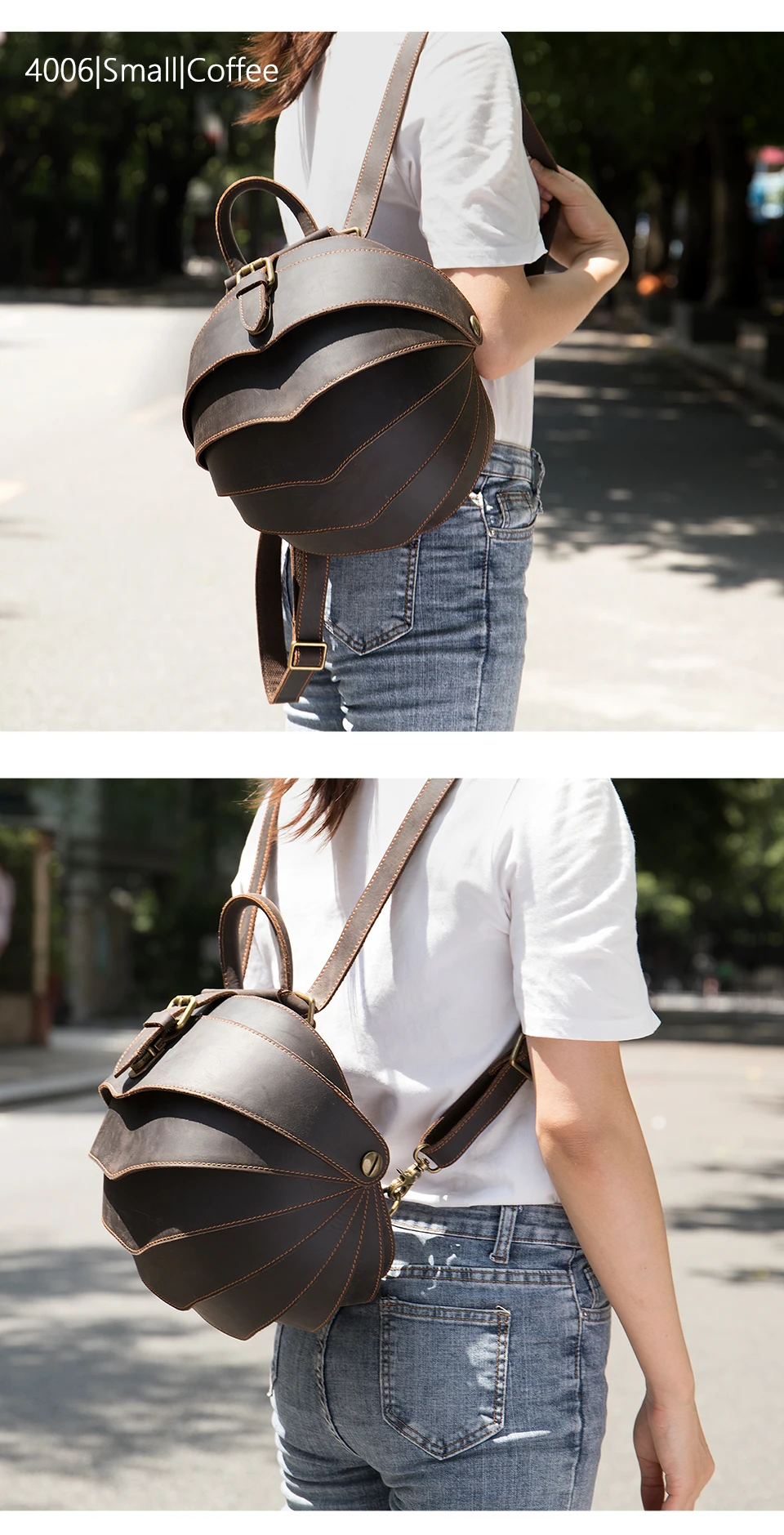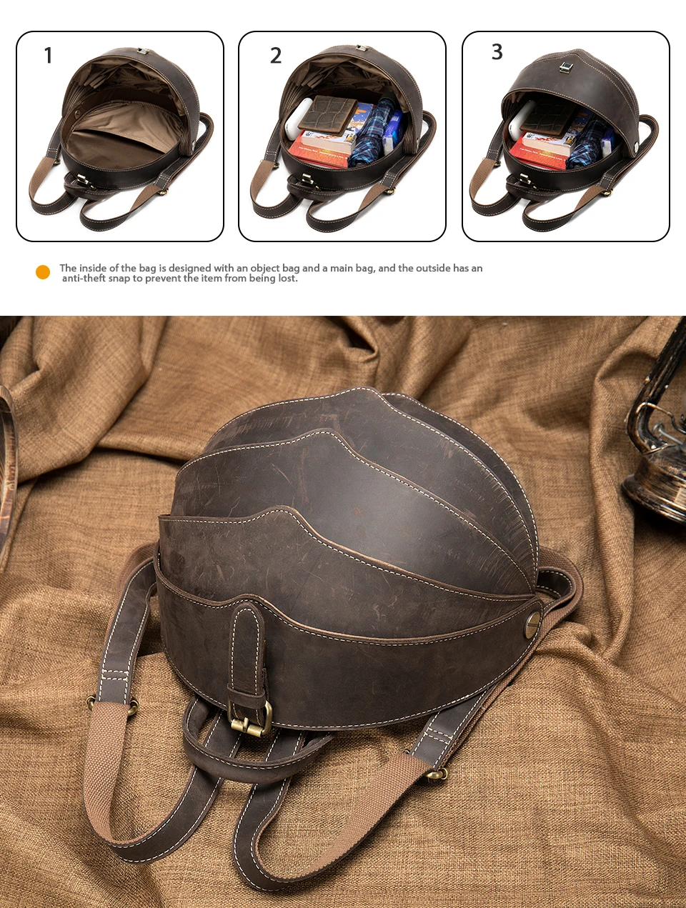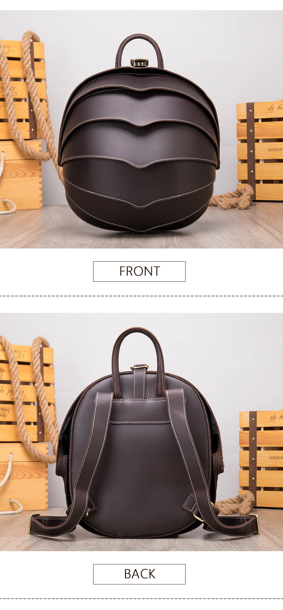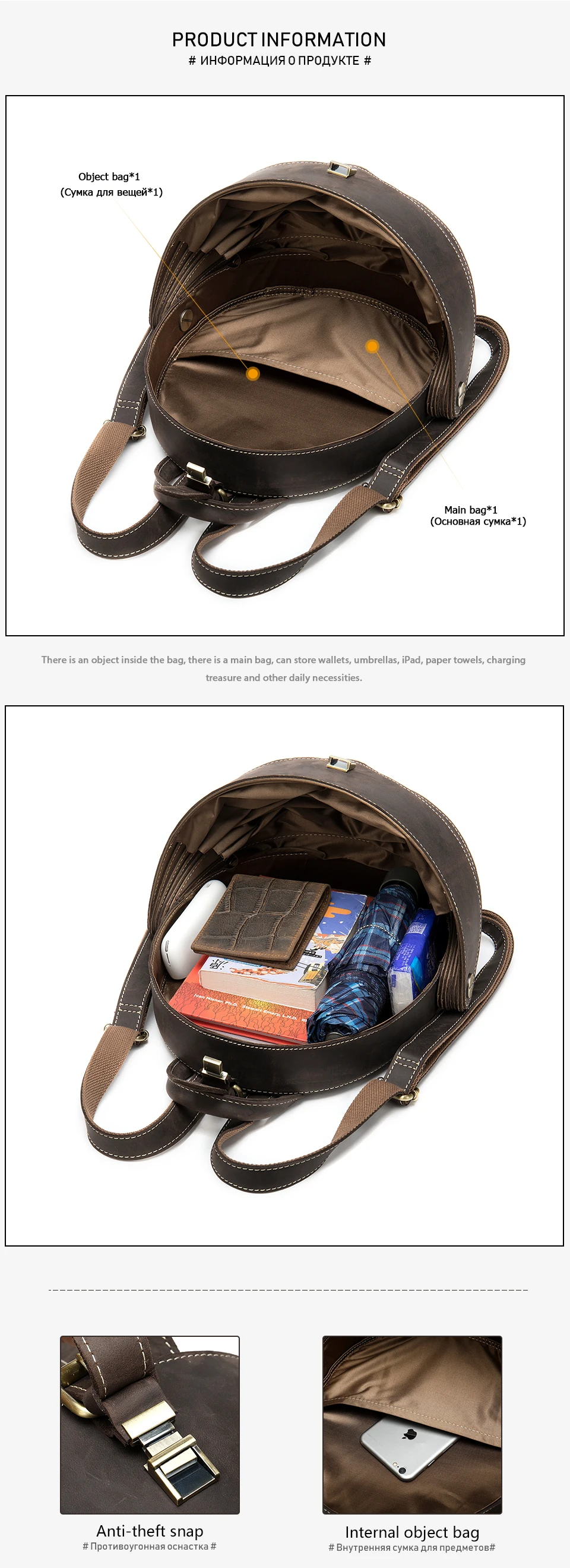 WESTAL Crazy Horse Leather Backpack for Woman Round Mini Schoolbag Backpack Purse Antitheft Rucksack Ladies Designer Backpacks