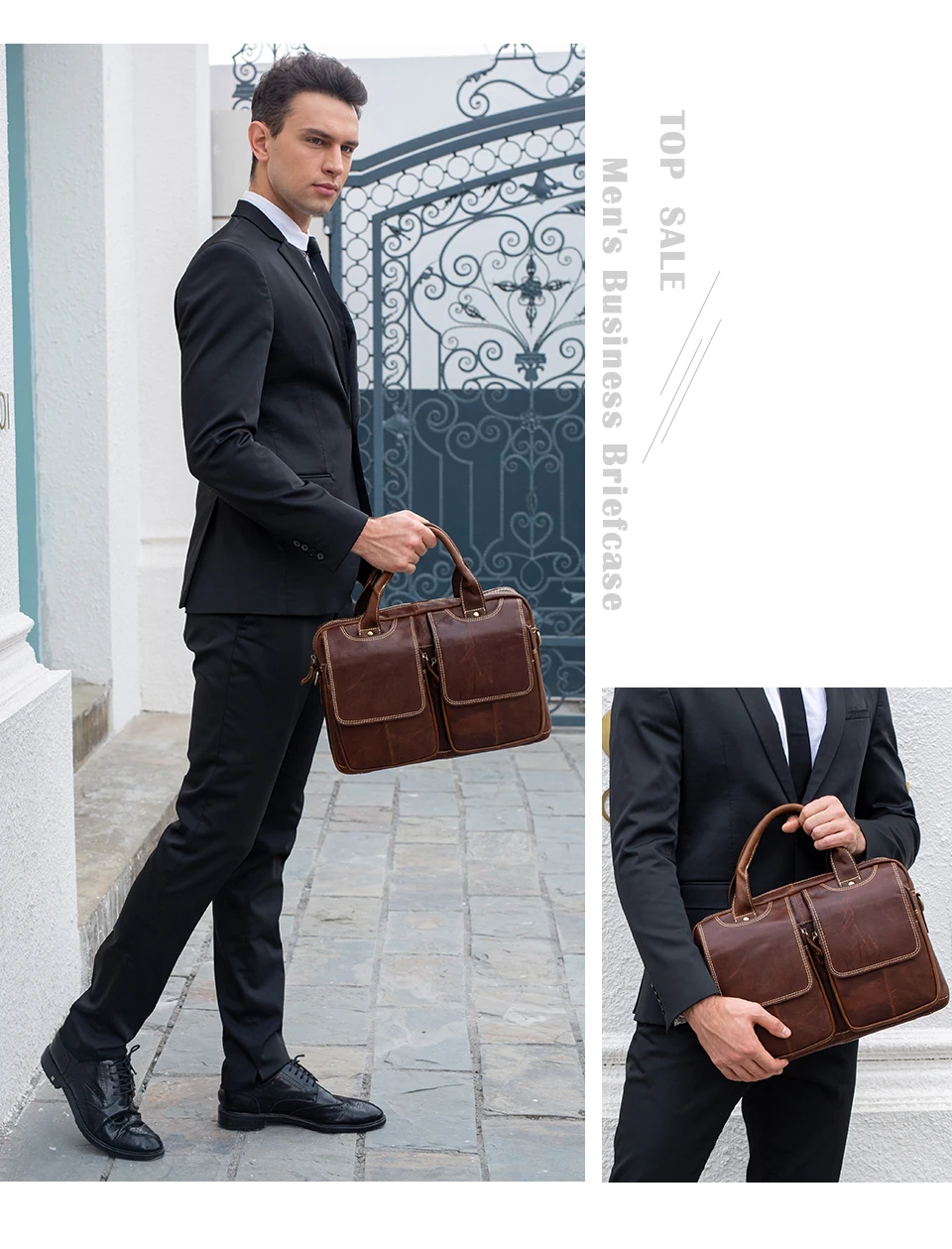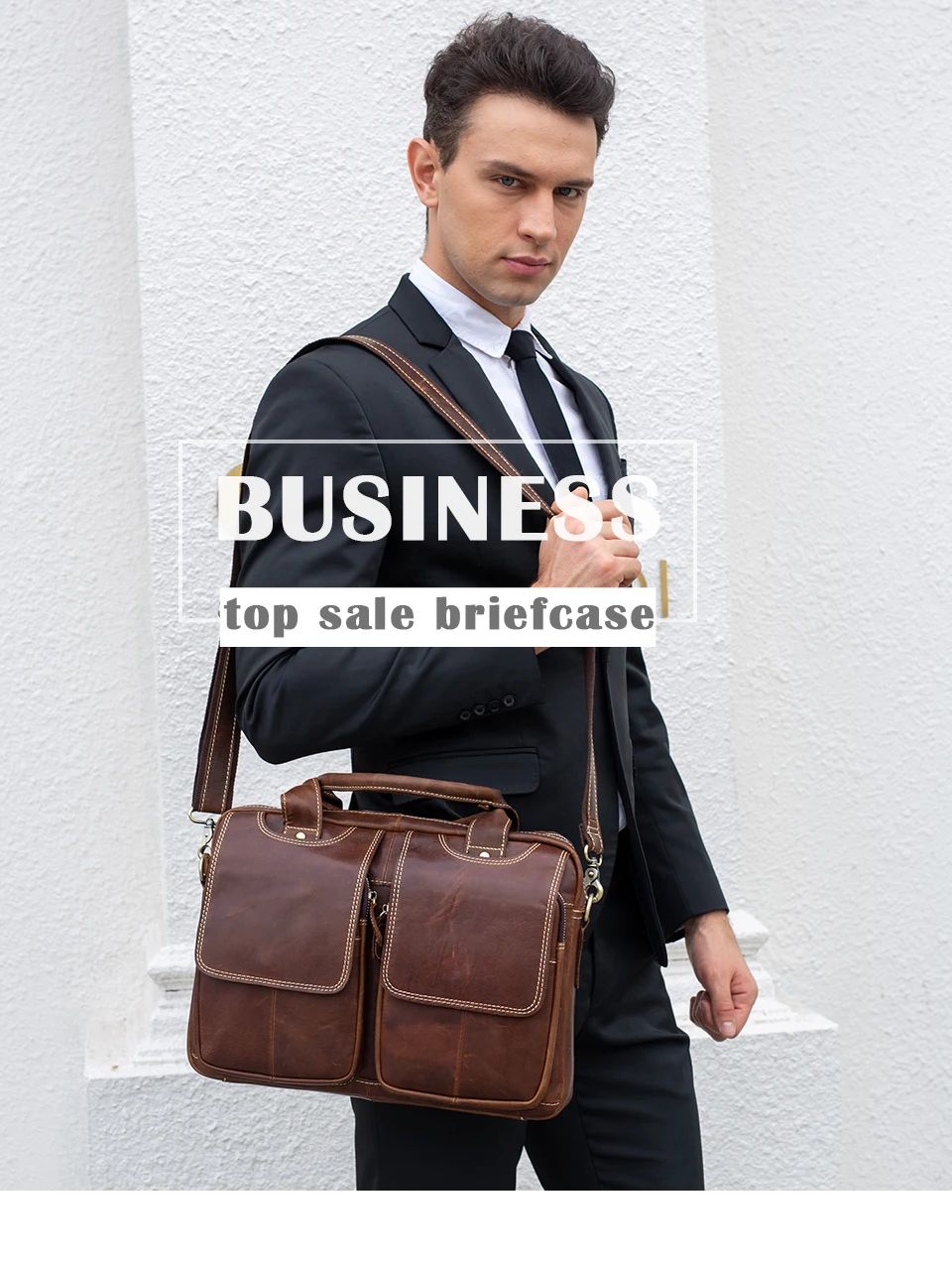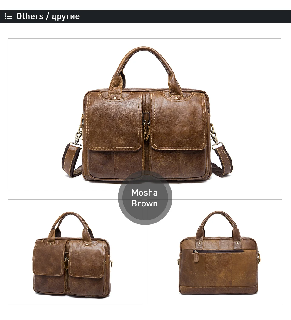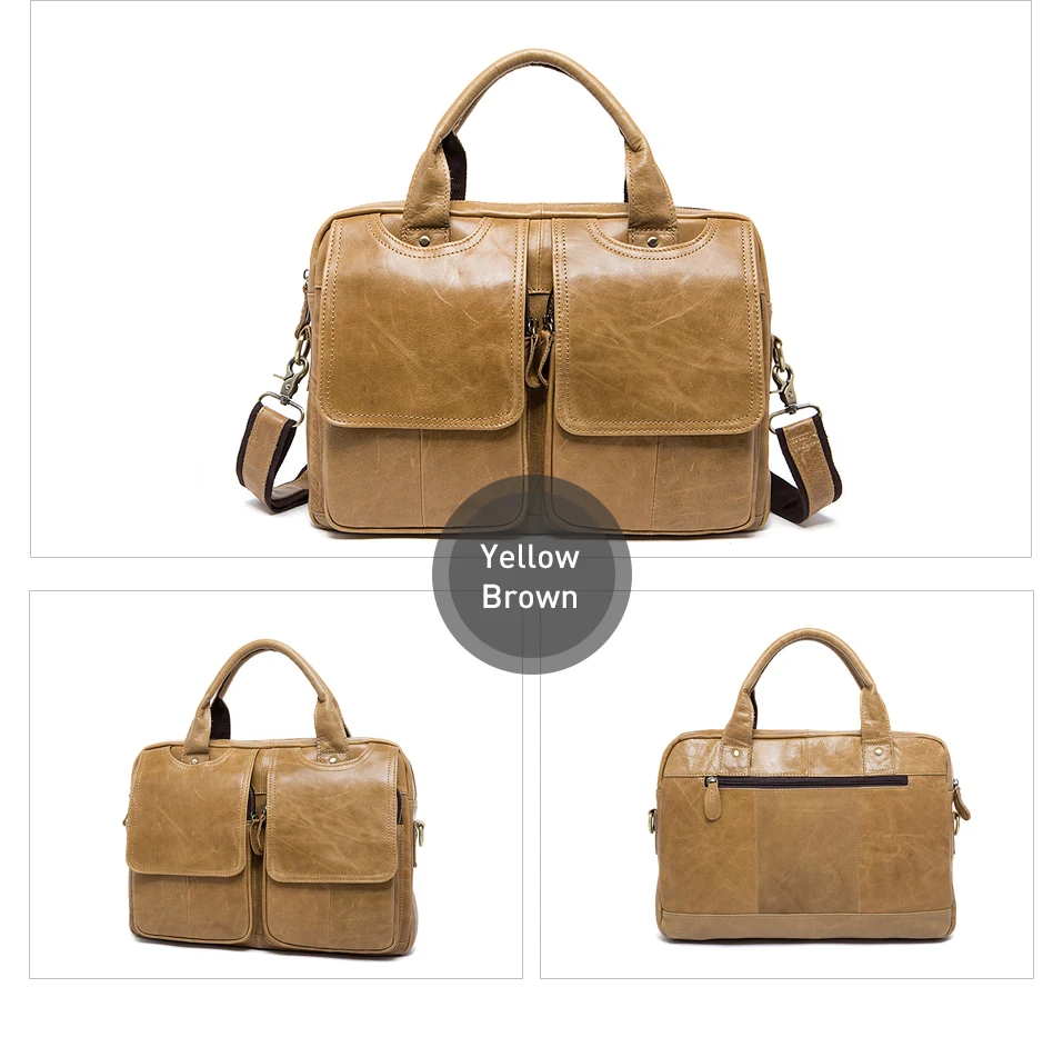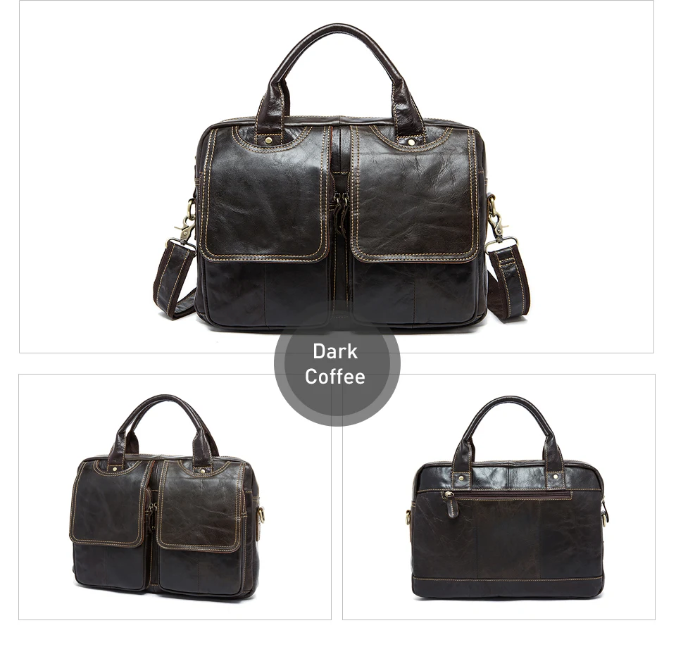 WESTAL Men's Bag Genuine Leather Men's Briefcases Laptop Bag Leather Totes for Document Office Bags for Men Messenger Bags 8002