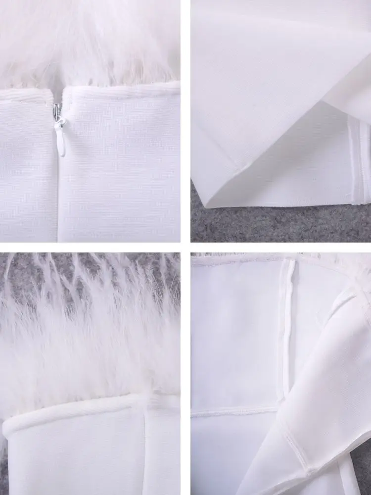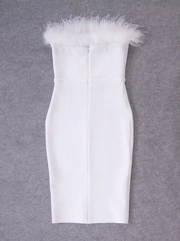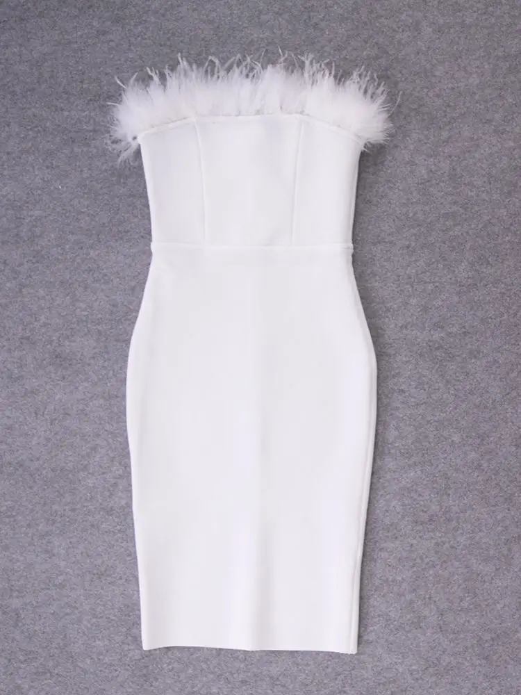 White Sexy Feathers Bandage Dresses For Women Pink Bodycon Dress Club