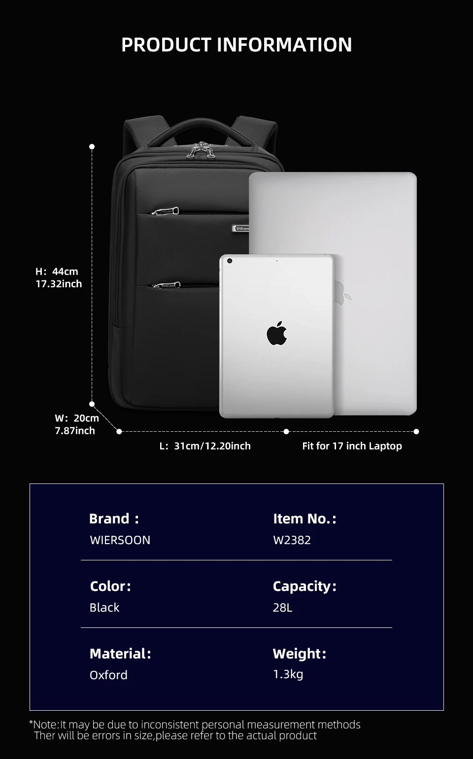 WIERSOON Backpack Laptop Waterproof 15.6 Inch Daily Work Business Backpack Men School back pack mochila Men's Backpack Female