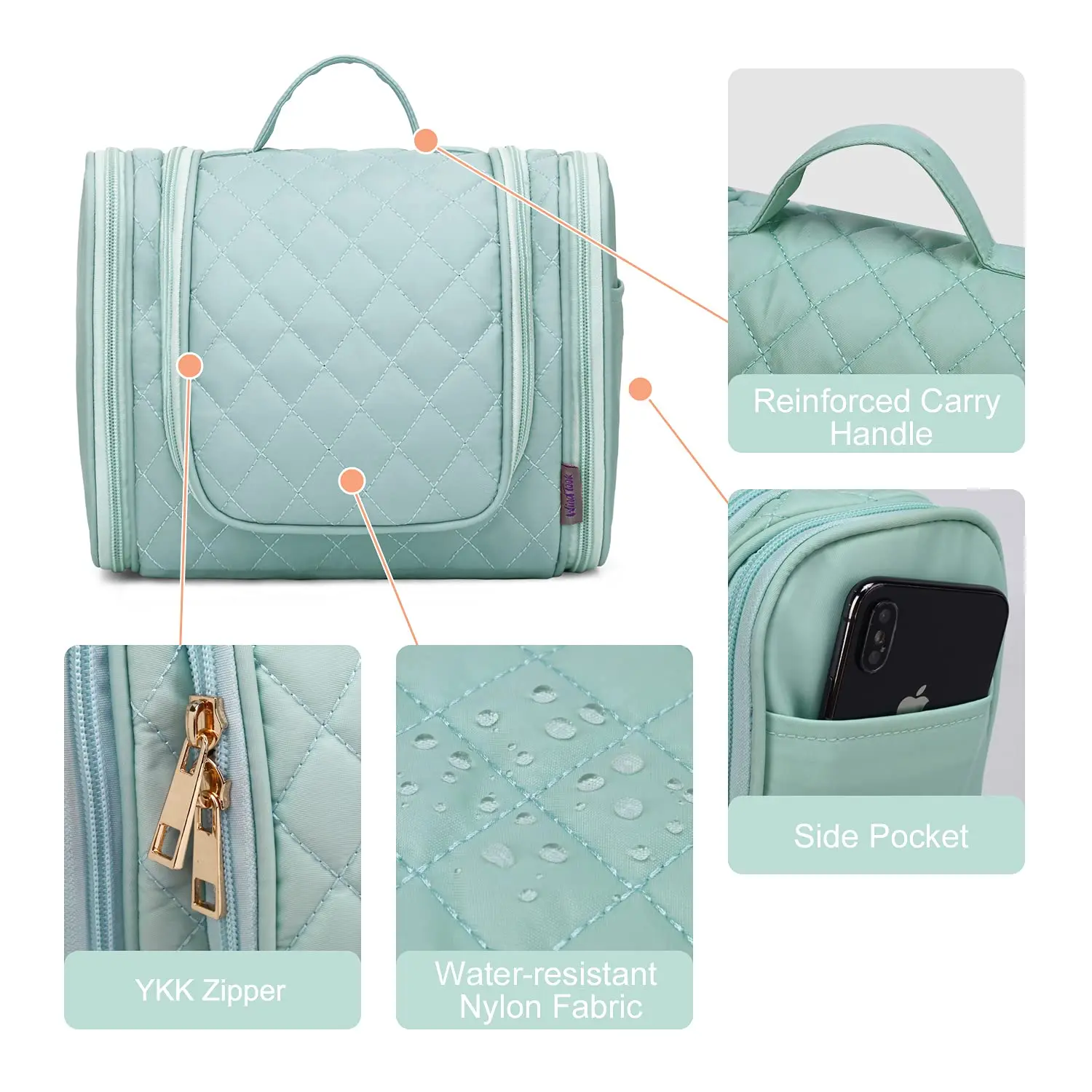ANTIBACTERIAL MATERIALS: This toiletry bag for women is made of high-quality ripstop nylon fabric.