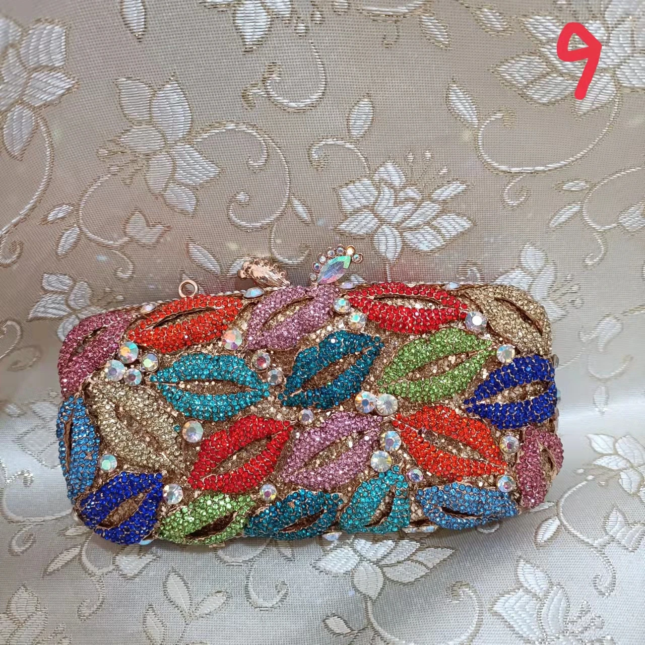 Woman Multicolored Lips Diamond Evening Purse Wedding Bridal Banquet Cocktail Clutch Bag Party Prom Gala Hollow Crystal Handbag