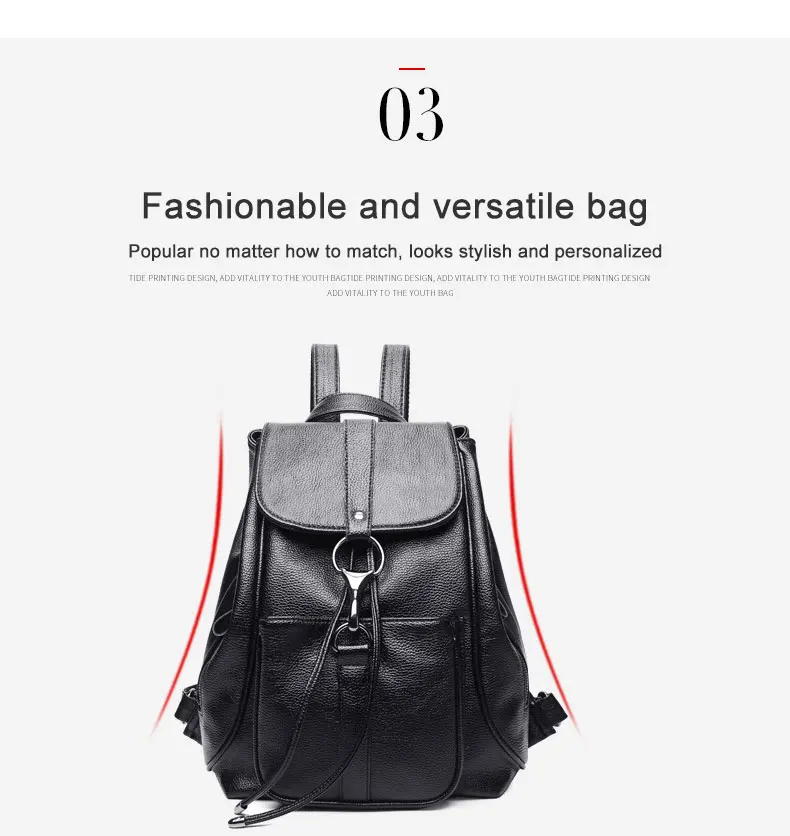 Women Backpack 2024 New PU Leather Girls School Bag Large Capacity Black High Quality Anti Theft Female Backpacks WJT043