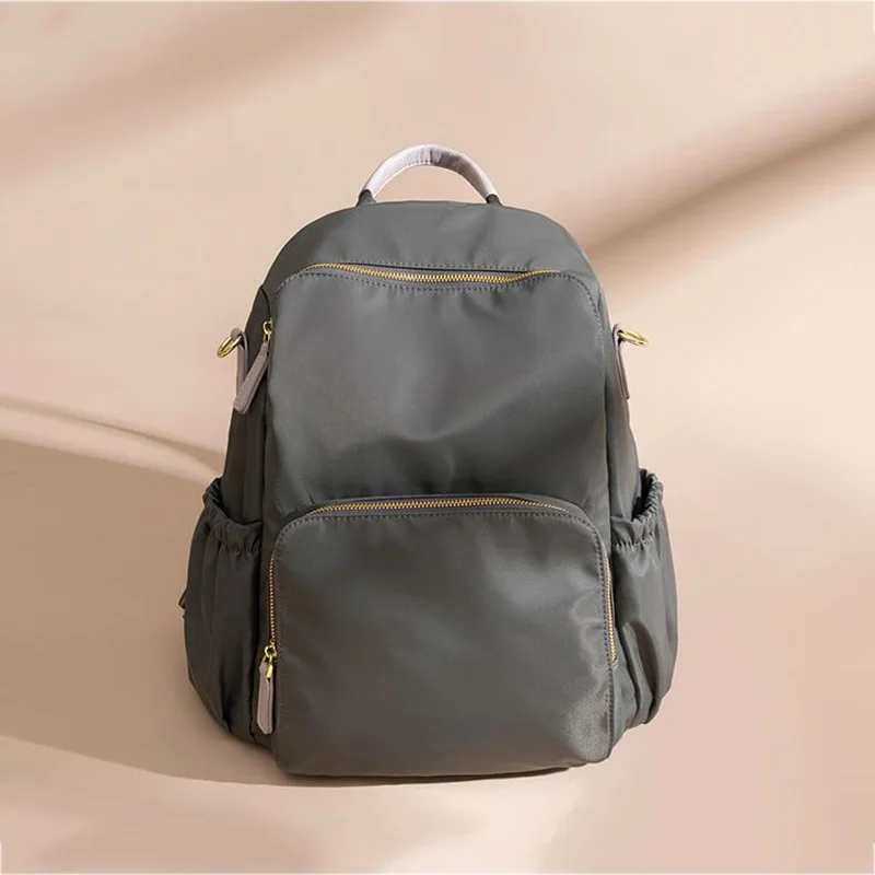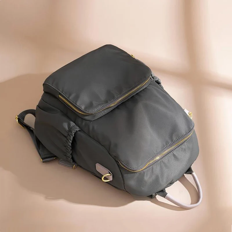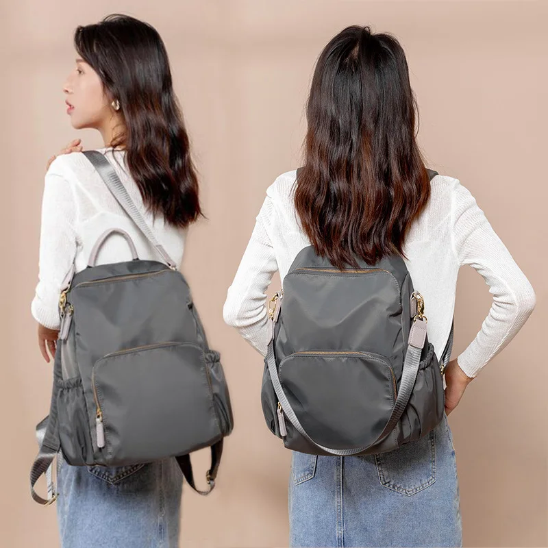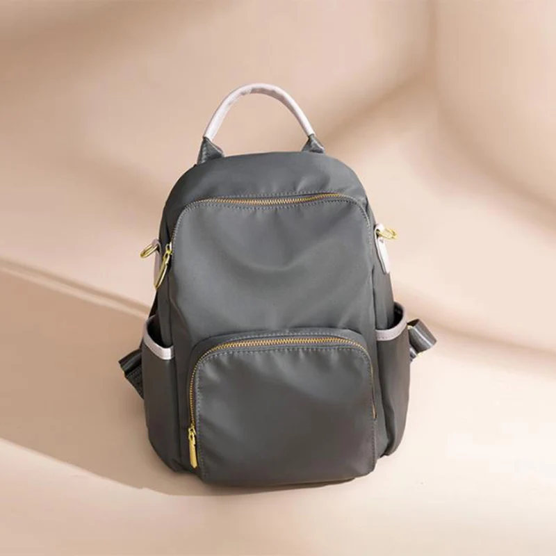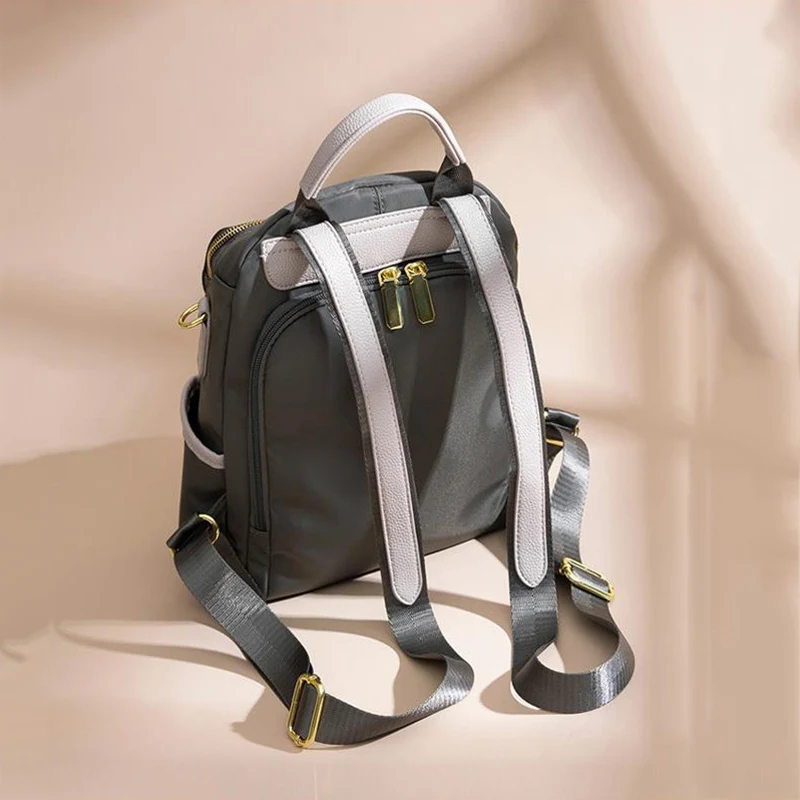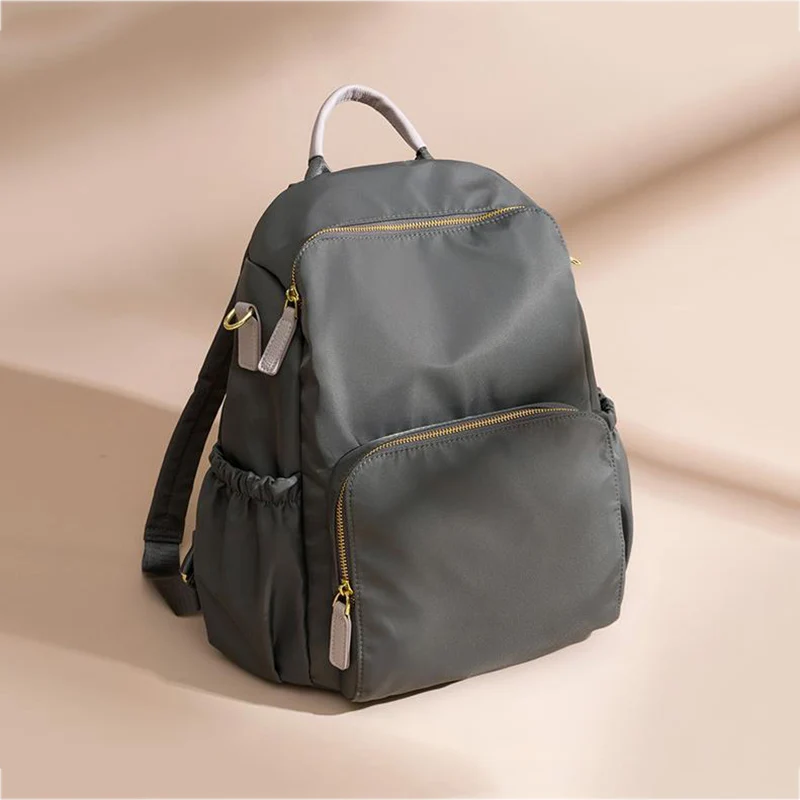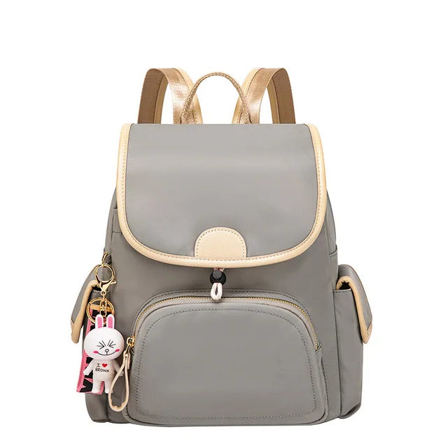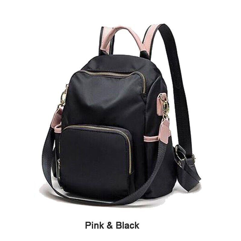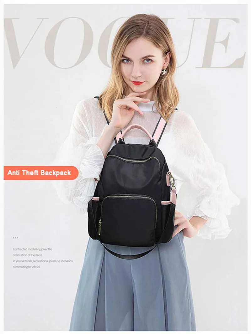 Name: Women Backpack Fashion All-match Oxford Cloth Lady Business Travel Leisure Canvas Bag Girl Large-capacity Anti-theft Schoolbag Material: Fabric: Nylon Sizes: Two sizes are avaiable Colors: black, grey, pink, apricot, black with pink. Warm tips: The hardware of this model is gold color, if you mind it , please enter the following link for dark gery color hardware, thanks.