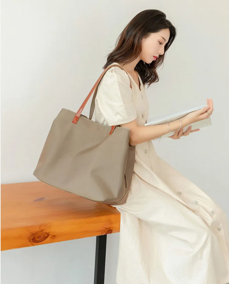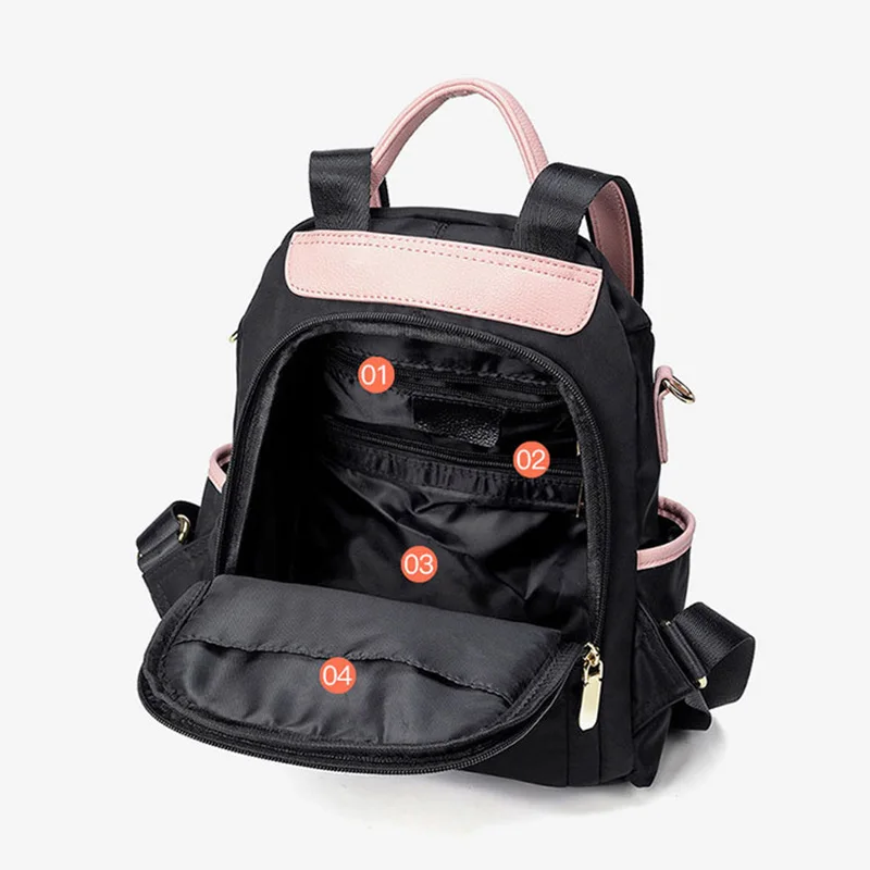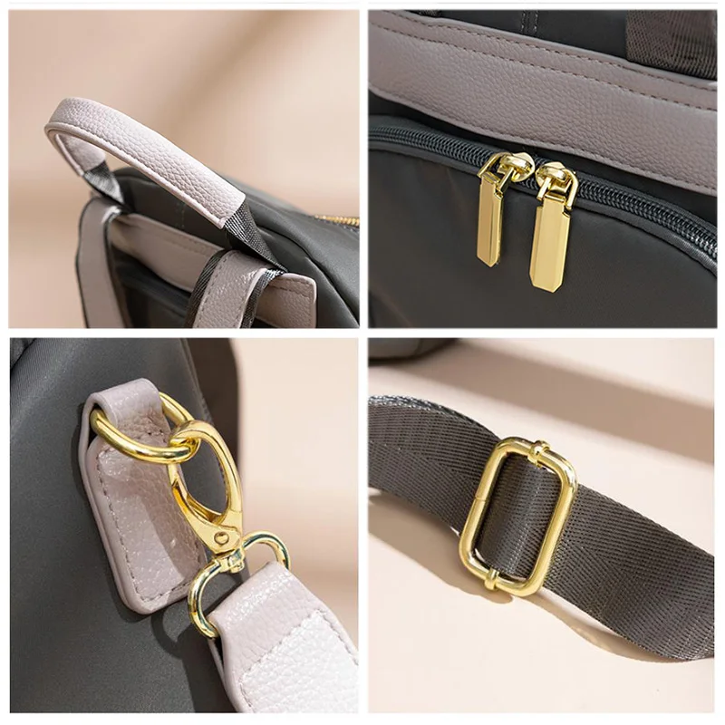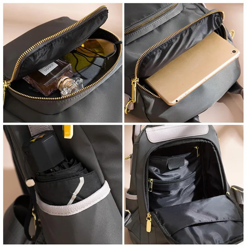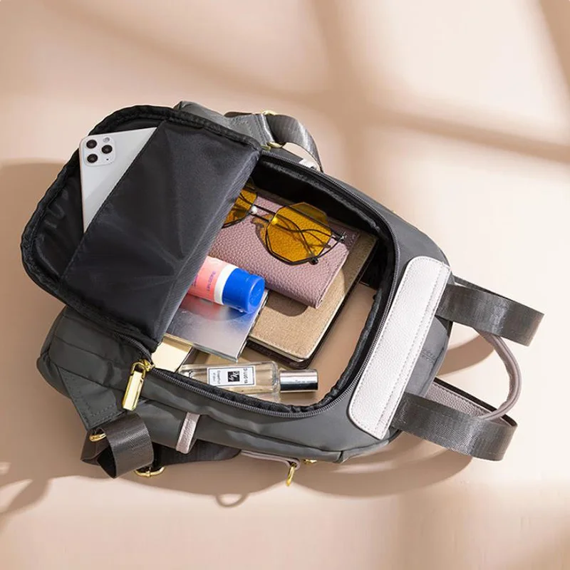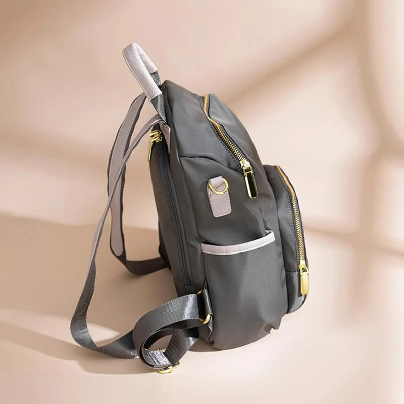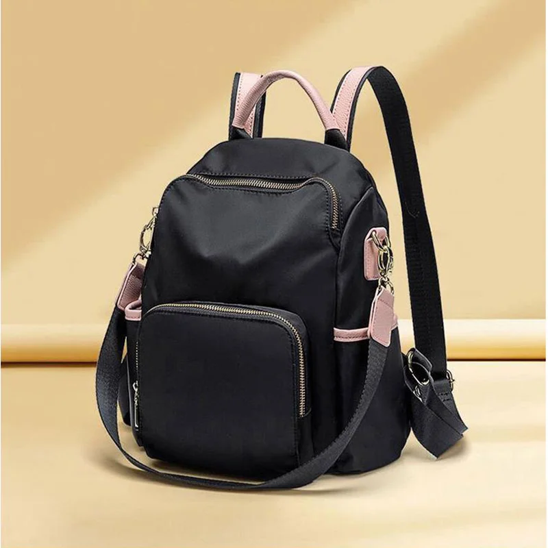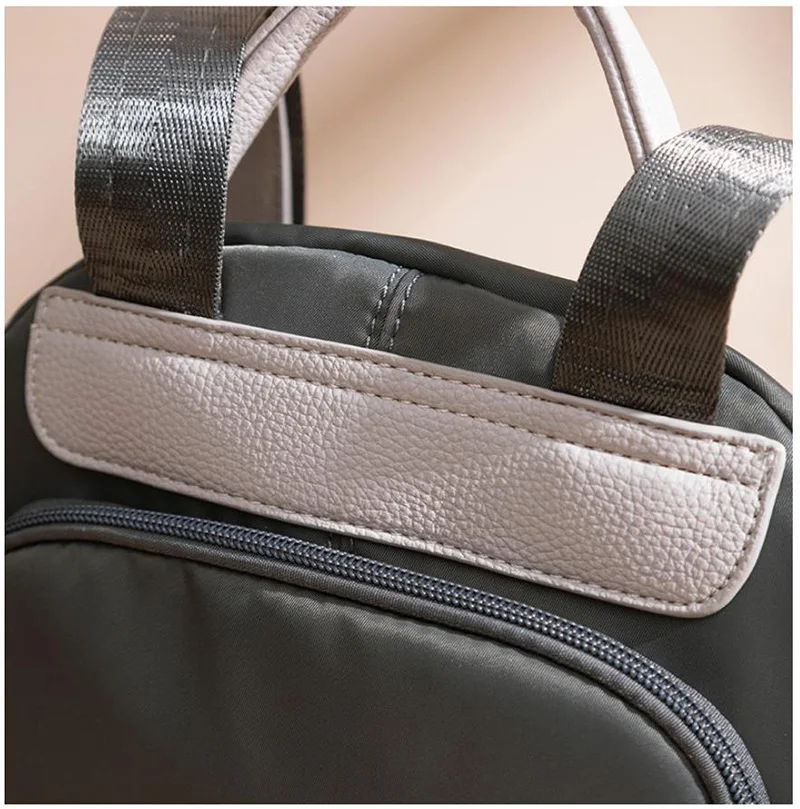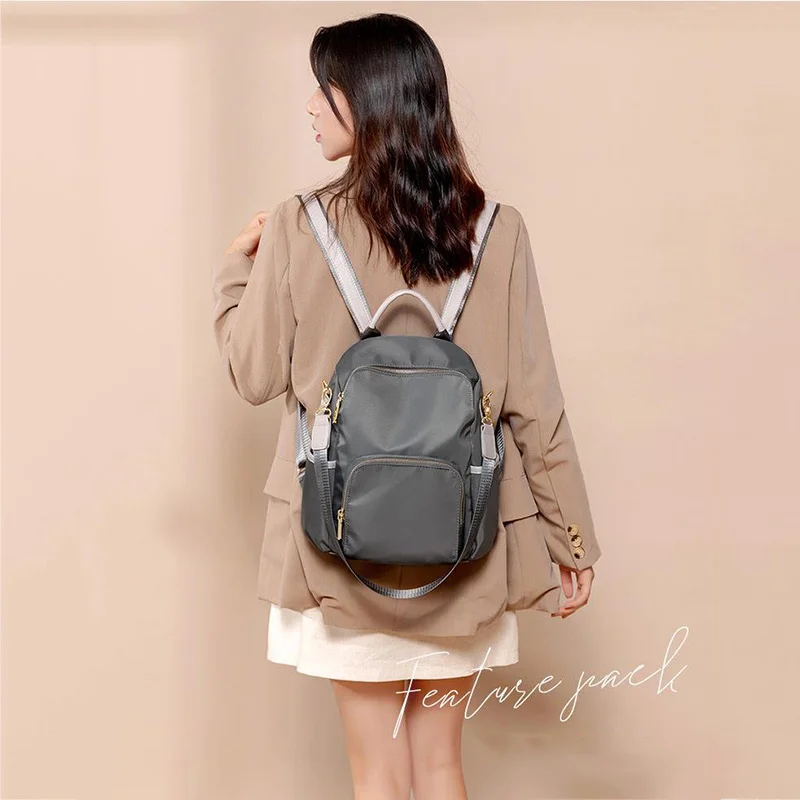 Name: Women Backpack Fashion All-match Oxford Cloth Lady Business Travel Leisure Canvas Bag Girl Large-capacity Anti-theft Schoolbag Material: Fabric: Nylon Sizes: Two sizes are avaiable Colors: black, grey, pink, apricot, black with pink. Warm tips: The hardware of this model is gold color, if you mind it , please enter the following link for dark gery color hardware, thanks.