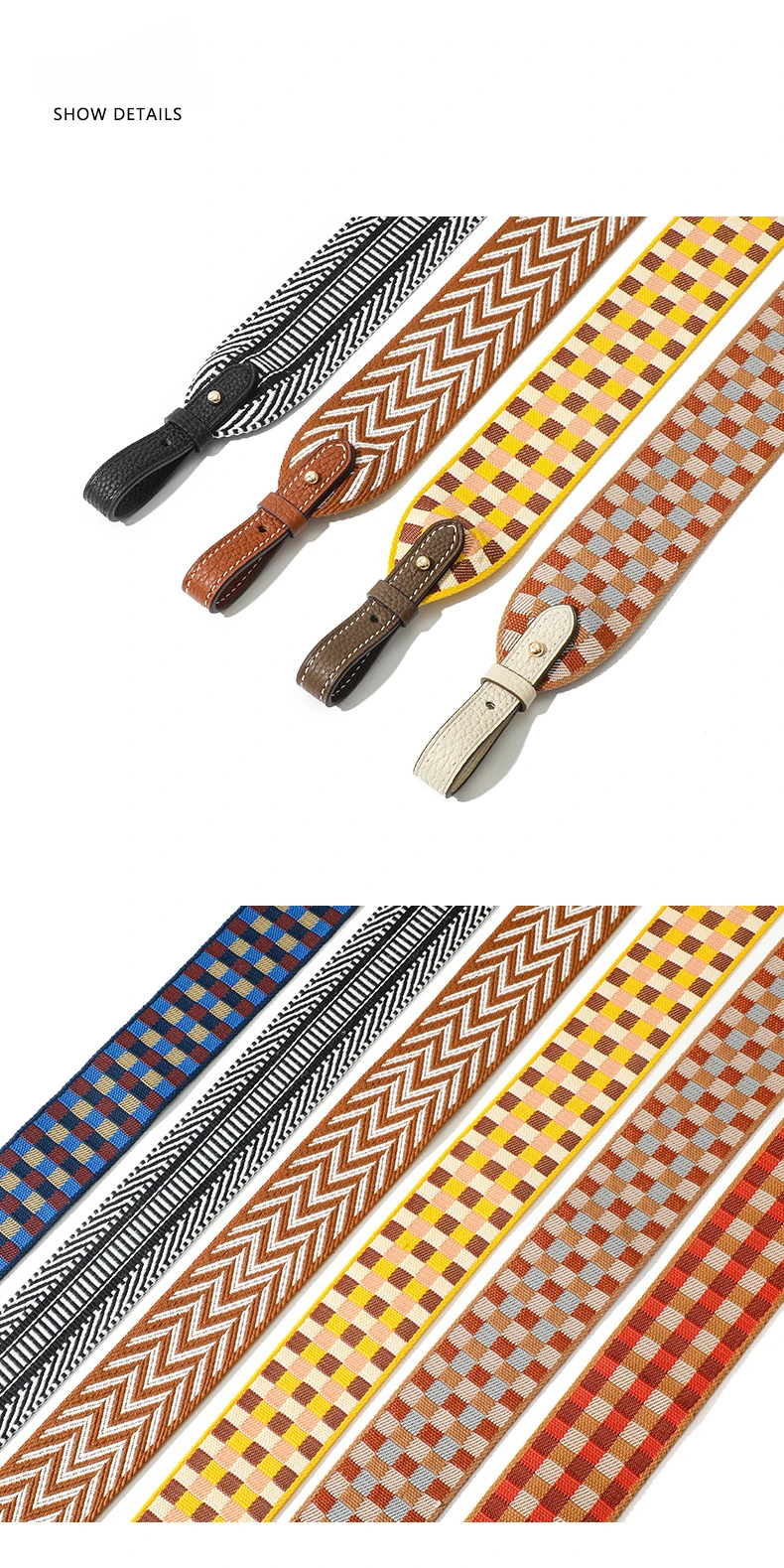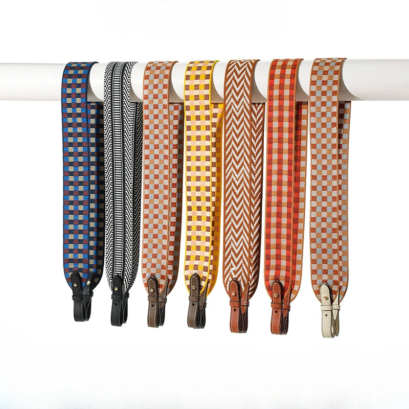 Women Bag Leather Buckle Strap for Crossbody Canvas Strap Bag Canvas Replace Wide Shoulder Multi Color Plaid Jacquard Strap