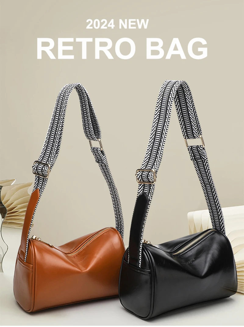Women Bags 2024 New Fashion Shoulder Bag PU Leather Boston Retro Style Handbag Minimalist Leisure Girl's Crossbody Bag A2156