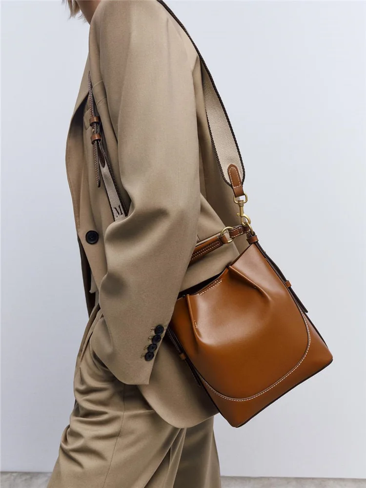 Women Bucket Shoulder Bag Crossbody Handbag Fashion Simplicity High-capacity Ladies PU Leather Bag Female Handbags 2024 New