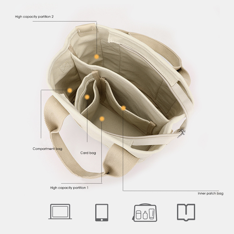 【Small Tote Bag】Size: 23*21*15cm. It not a normal size tote bag, but still roomy to fit your daily needs. You can easily take your iPad, cell phone, wallet, makeup, glasses, etc. with you.