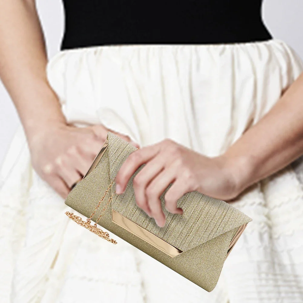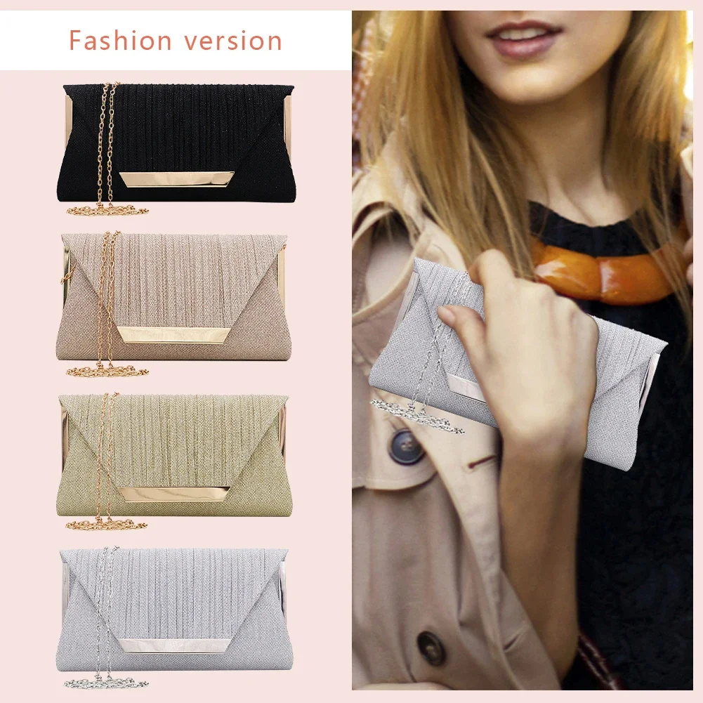 3. Sparkling Evening Bag: This clutch features a shiny surface and envelope design that's trendy and fashionable, making it a must-have accessory for any party or formal event.
