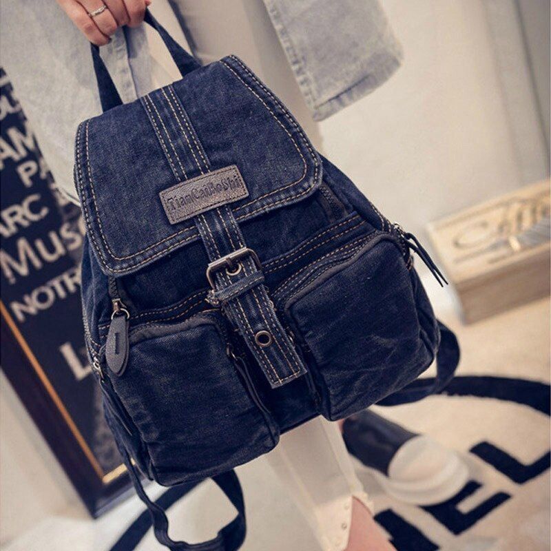 Women Fashion Denim Washed Retro Student School Bag Denim Backpack 30*32*12 CM