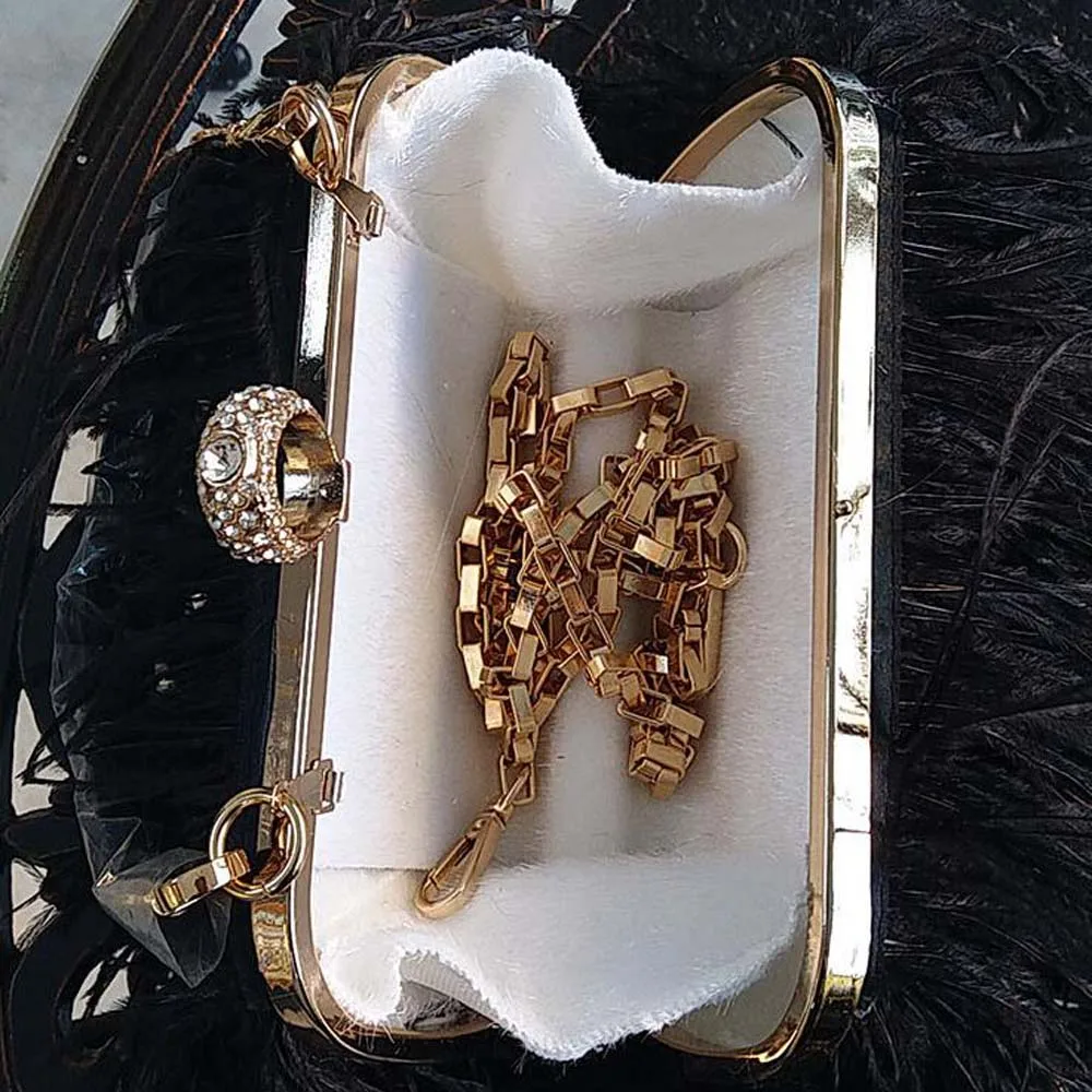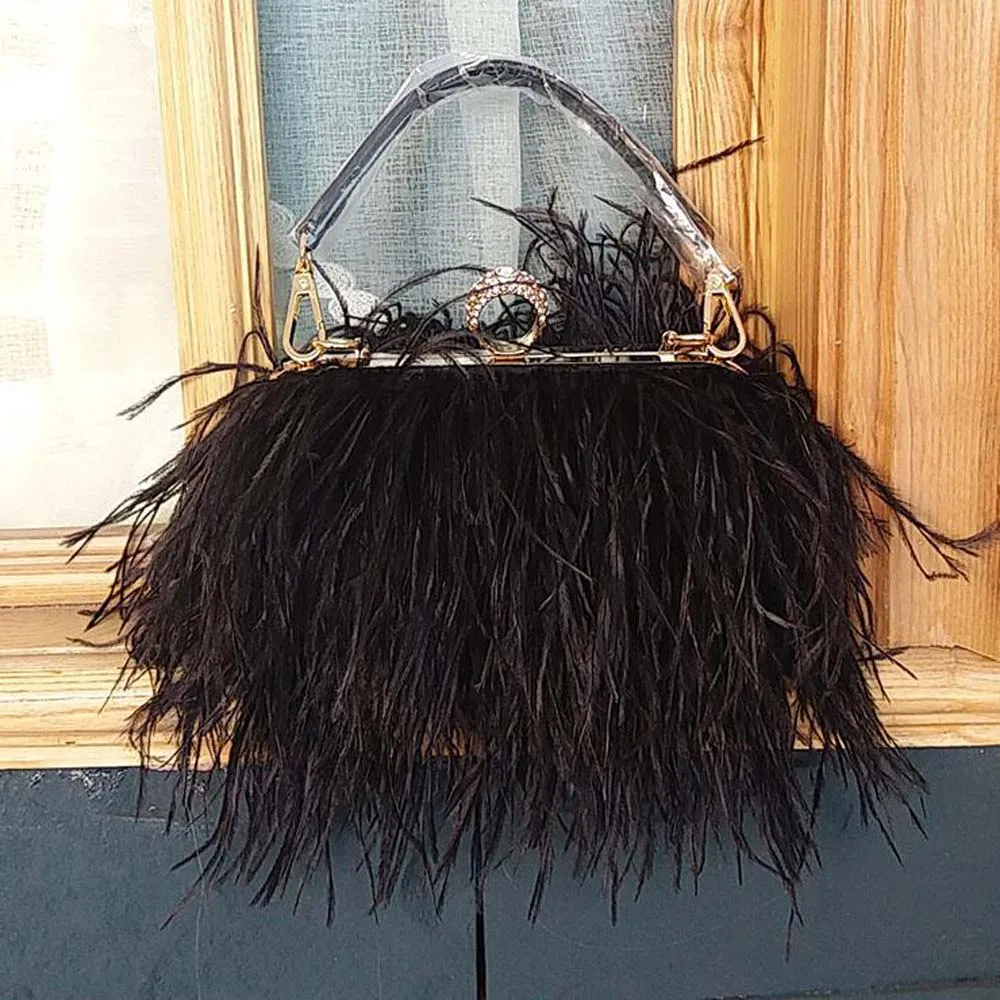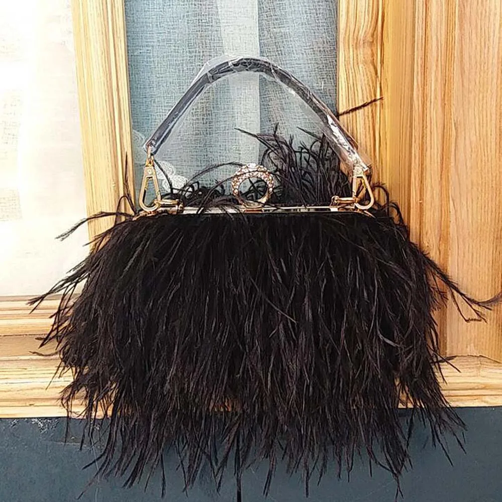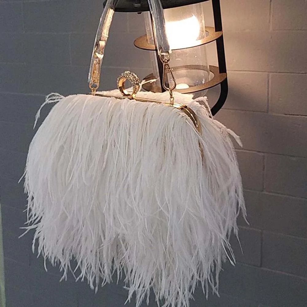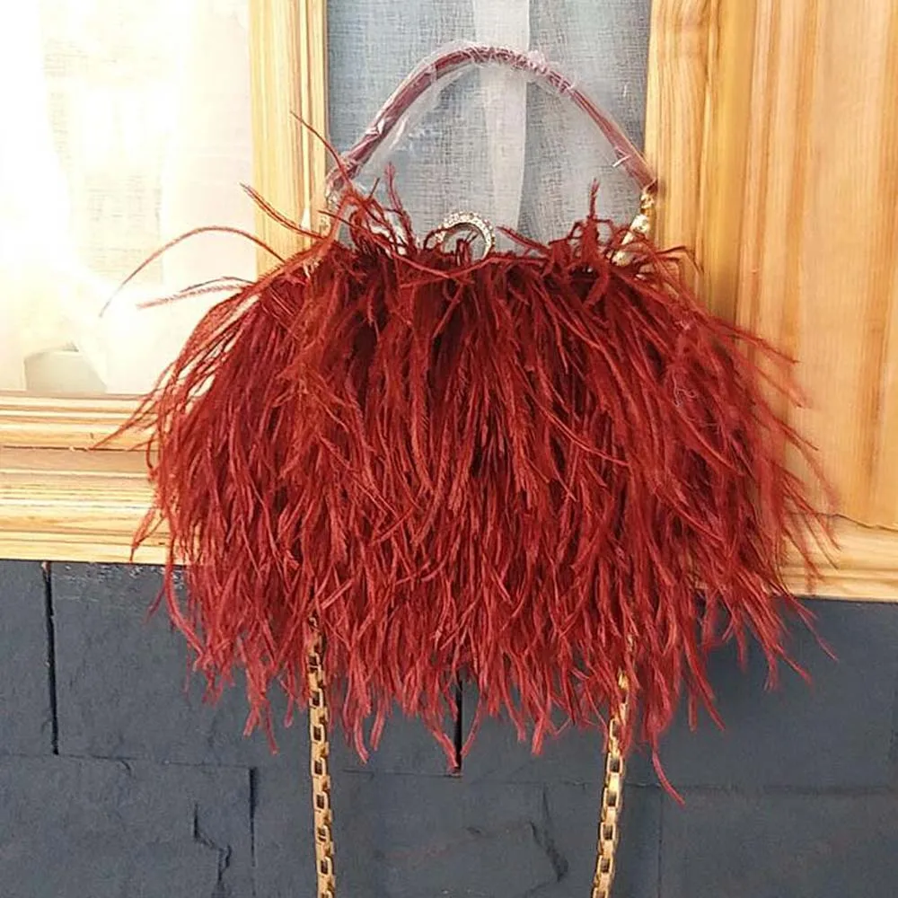Women Ostrich Fur Evening Bag Luxury Wedding Party Handbag Phone Purse Long Chain Tassel Shoulder Bag Valentine Day Gift Clutch