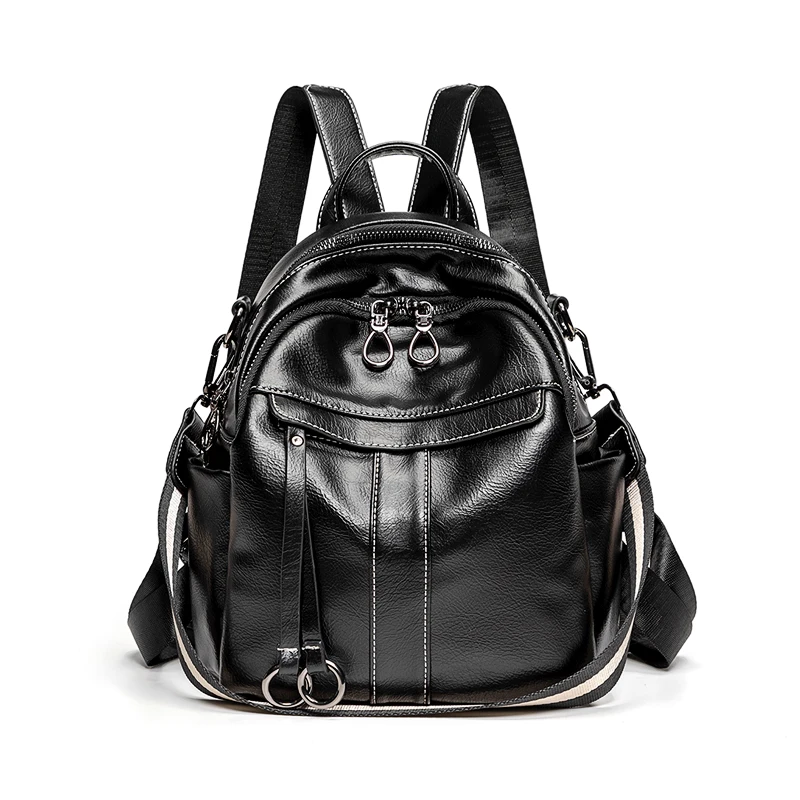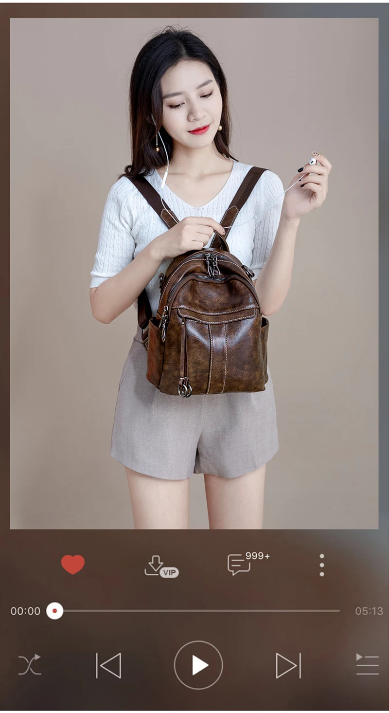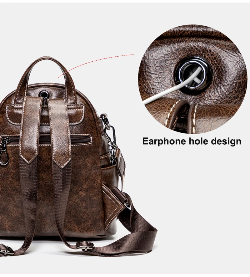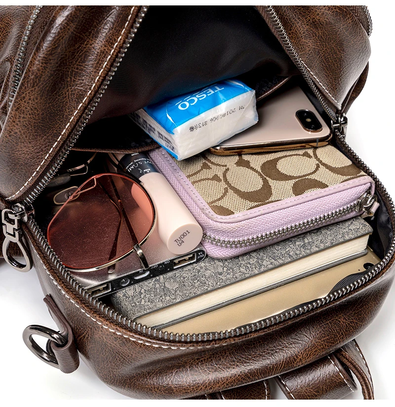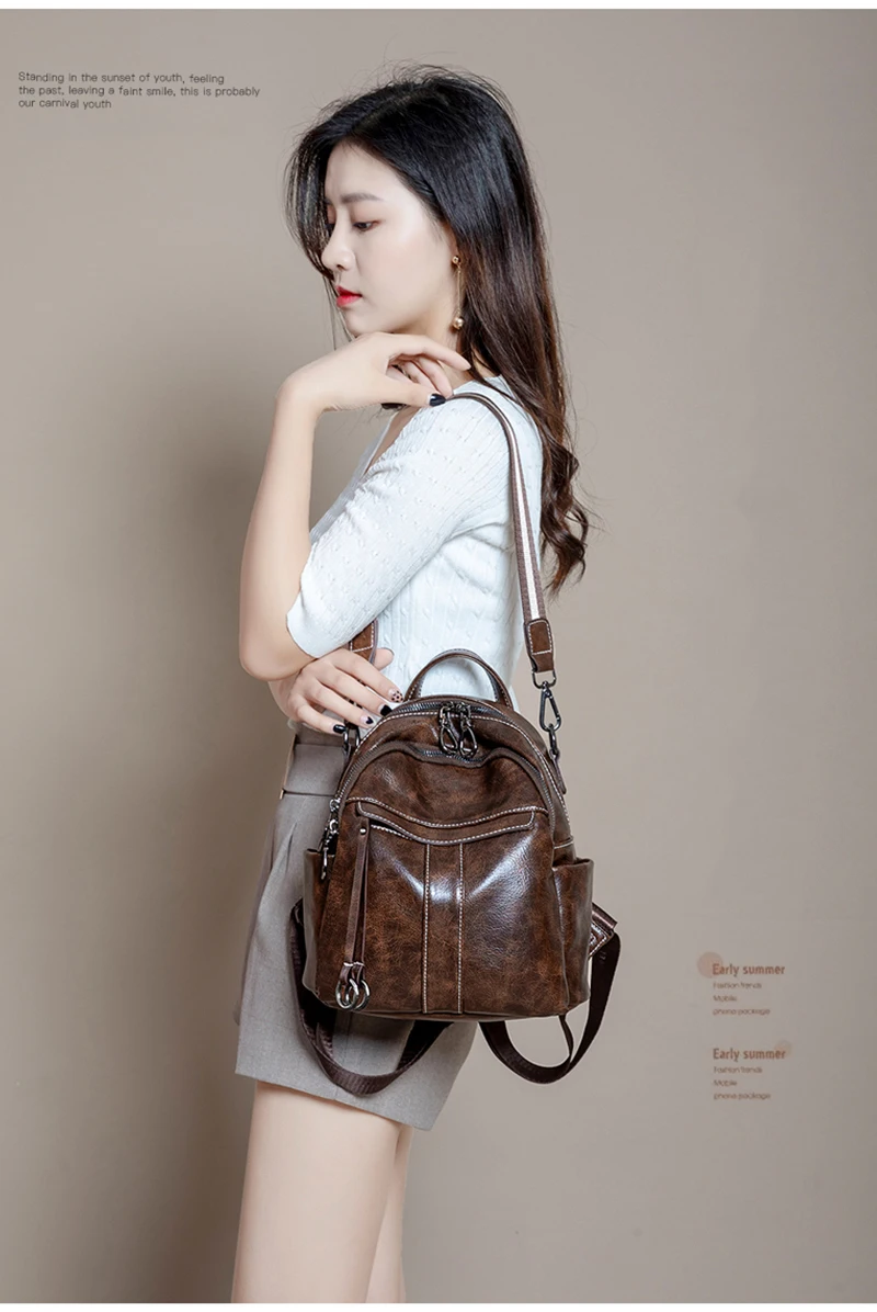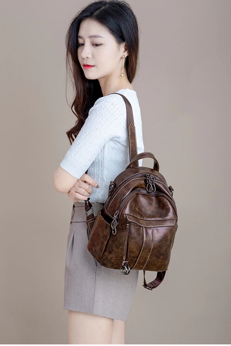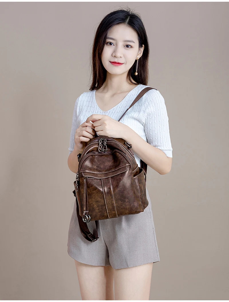 Women‘s Backpack 2024 New PU Oil Wax Leather Retro Style Women Shoulder Bag Fashion Girls Student Knapsack C9855