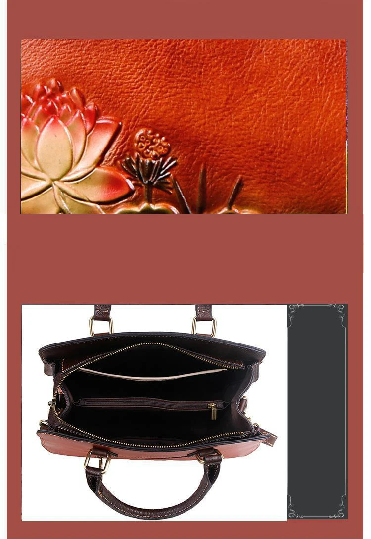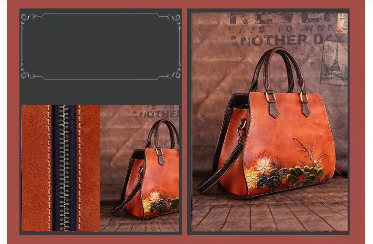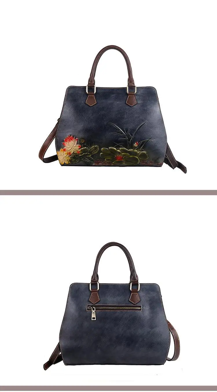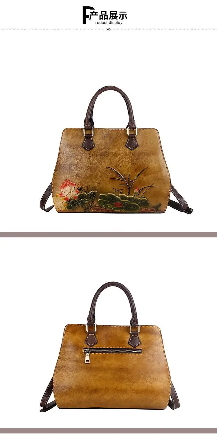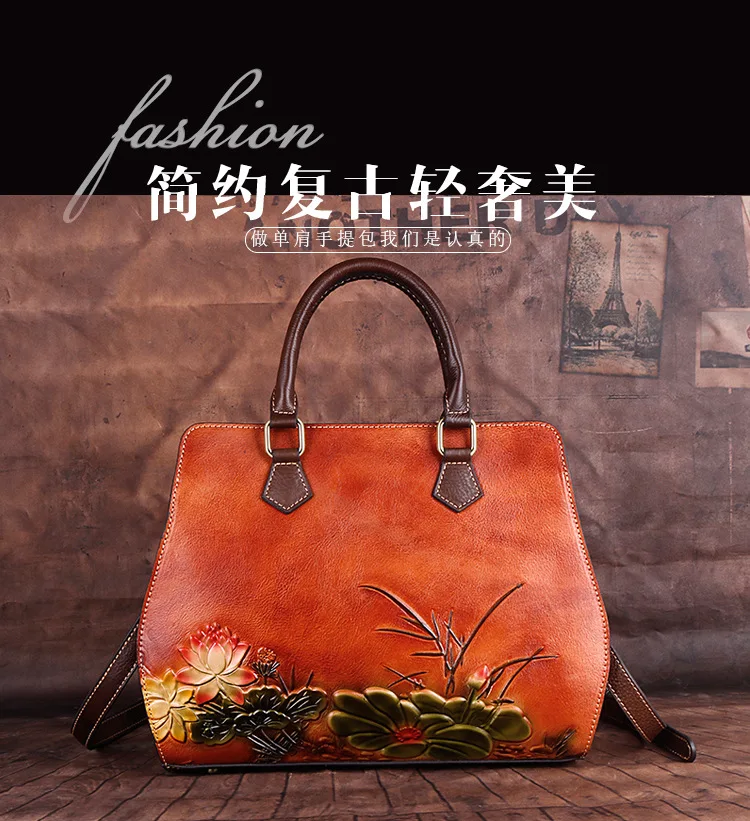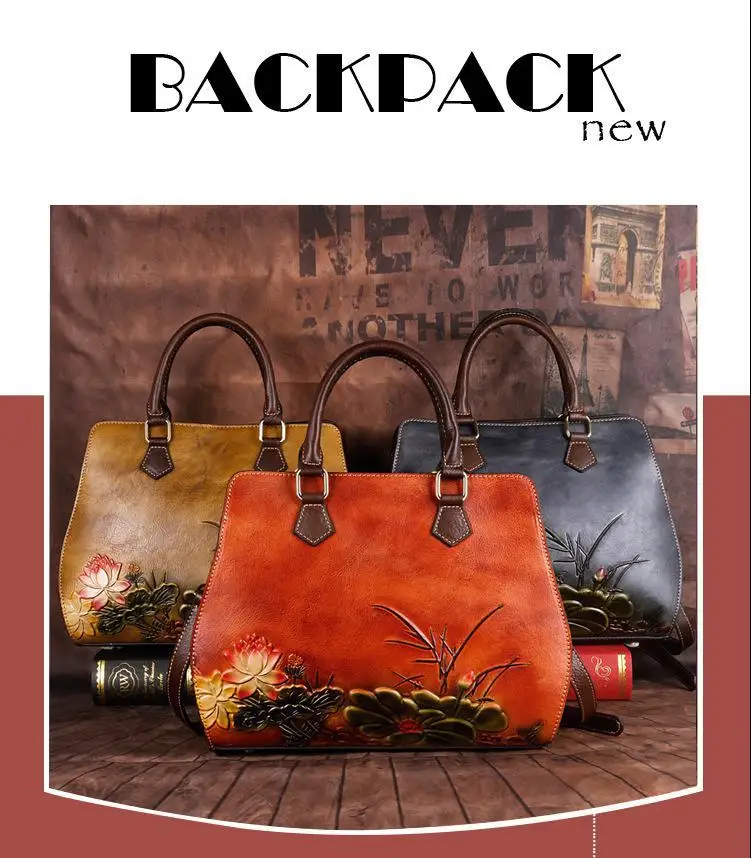 Women's Bag Retro Genuine Leather Shouder Bags For Women New Handmade Embossing Handbag Large Capacity Casual Bag Female